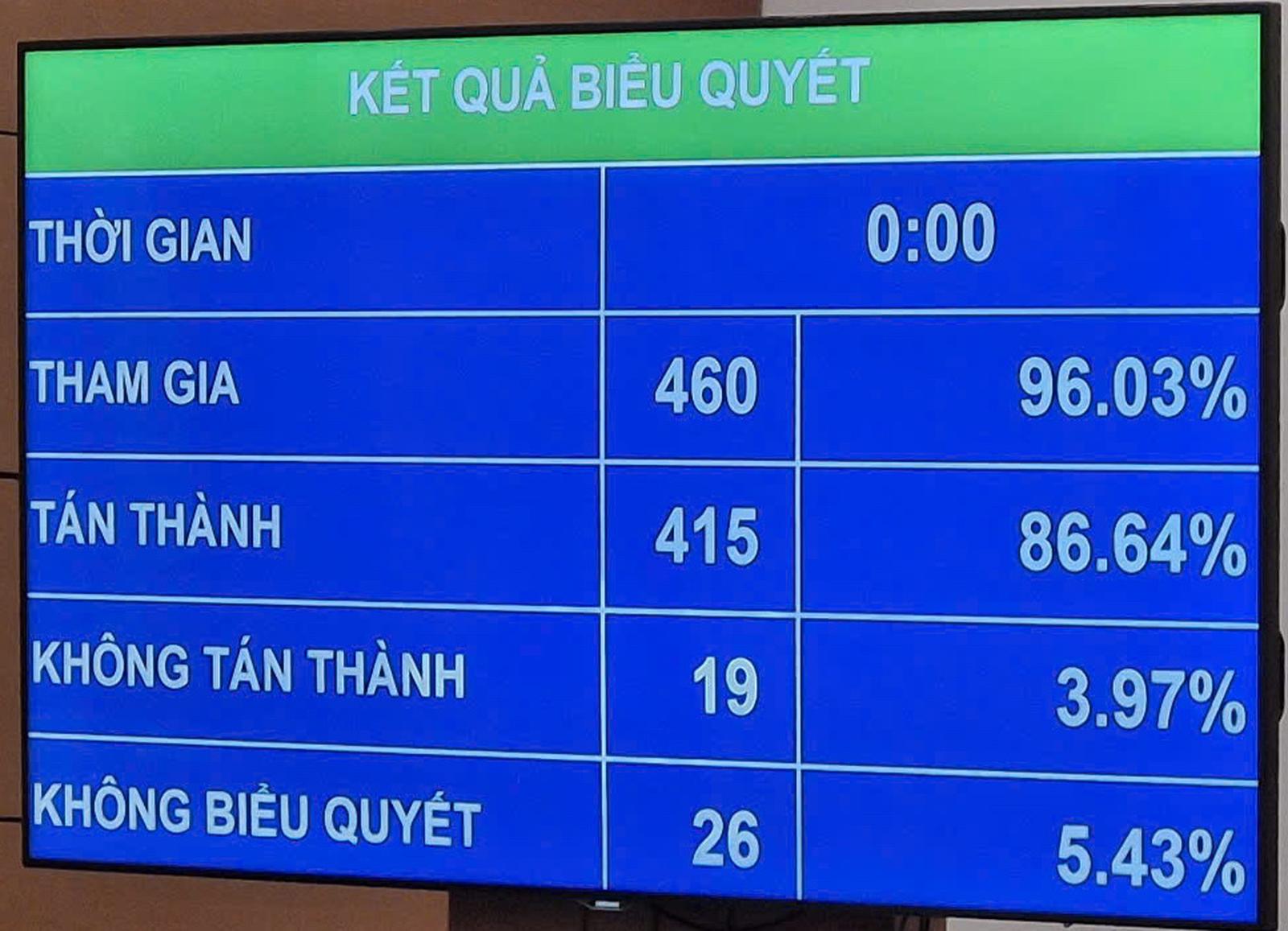 Kết quả Quốc hội biểu quyết thông qua Nghị quyết thí điểm thực hiện dự án nhà ở thương mại qua thỏa thuận nhận quyền hoặc đang có quyền sử dụng đất. Ảnh: H.G