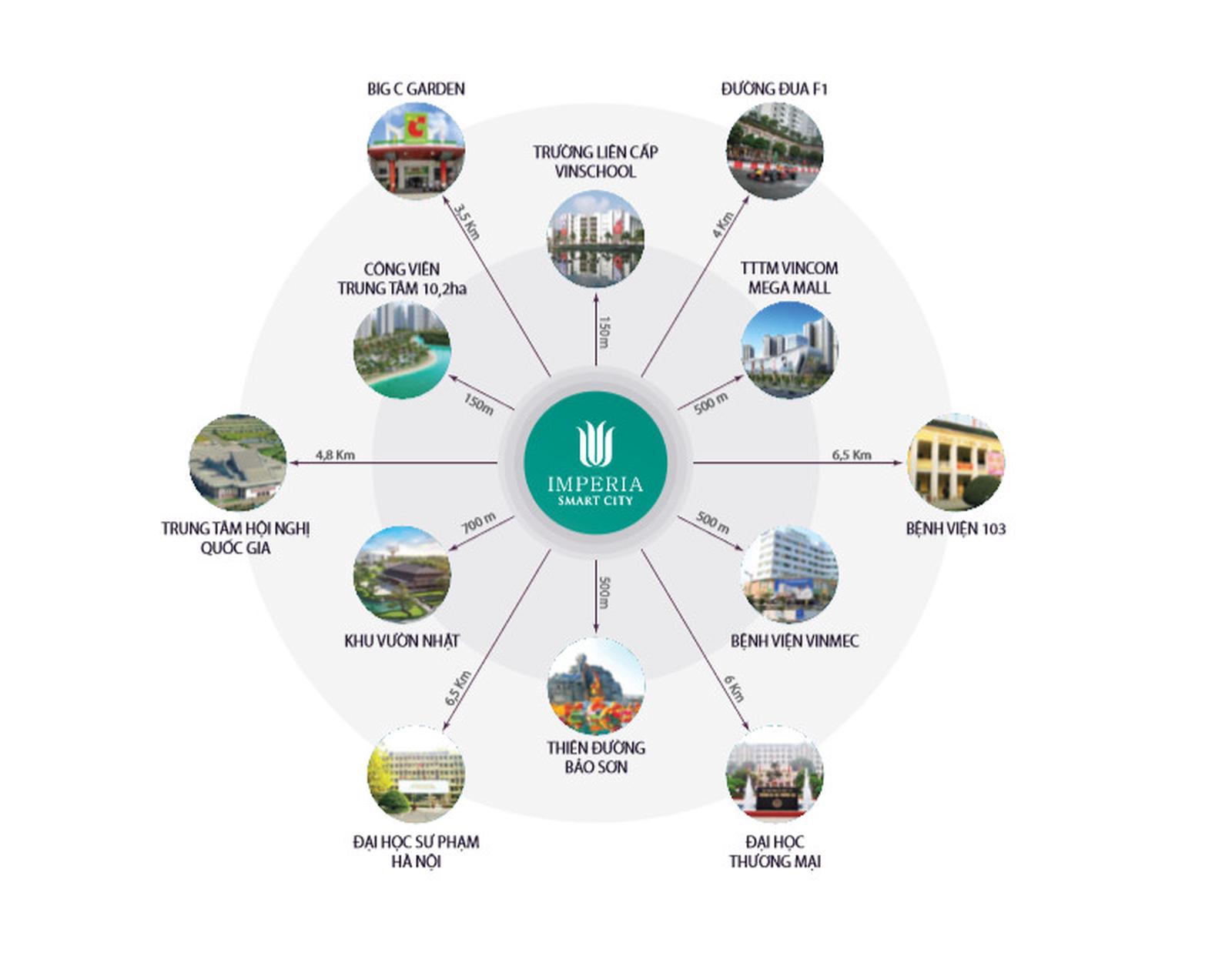Vị trí thuận tiện giúp Imperia Smart City kết nối nhanh với nhiều tiện ích trong và ngoài đại đô thị