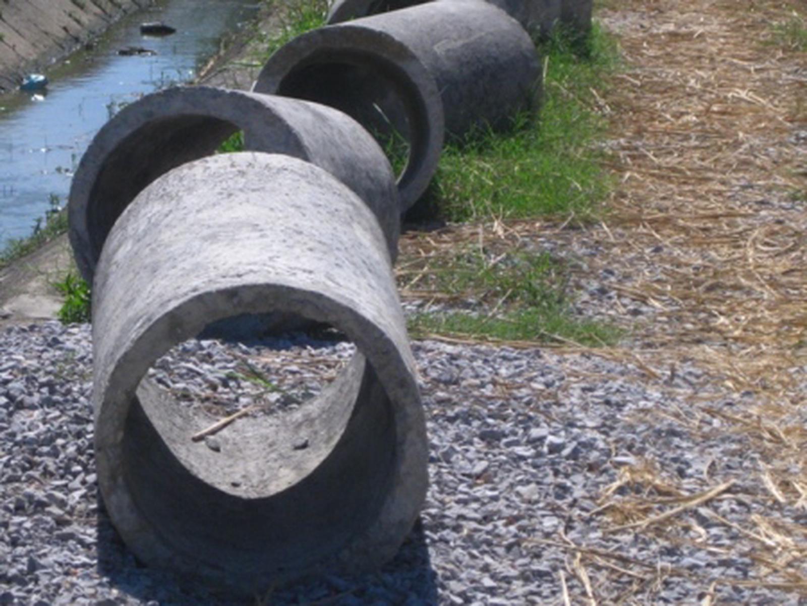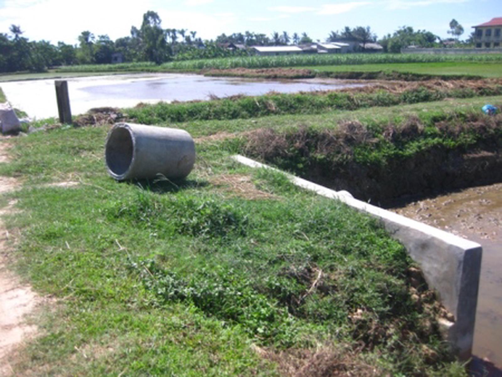 Công trình thủy lợi dở dang, ống cống cũng phơi năng, phơi sương. Ảnh: Văn Thanh