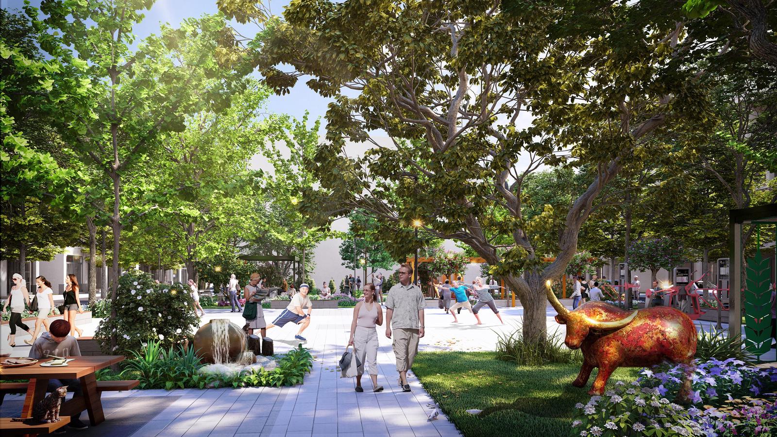 Tại Sun Urban City, chỉ cần bước ra khỏi nhà là công viên cây xanh và hồ nước trong lành. Với mật độ xây dựng chỉ 18% trên quy mô 420ha, Sun Urban City khác biệt hoàn toàn với sự tấp nập, bê tông hóa của những đô thị lớn. Đô thị nghỉ dưỡng này sở hữu 200ha không gian xanh mơ ước, nơi người già thảnh thơi tập thể dục, khiêu vũ, dưỡng sinh dưới những tán cây rợp bóng mát. Các sảnh tòa nhà, phòng sinh hoạt cộng đồng, 5 đại công viên hay các cung đường nội khu rợp bóng cây cũng trở thành điểm hẹn.