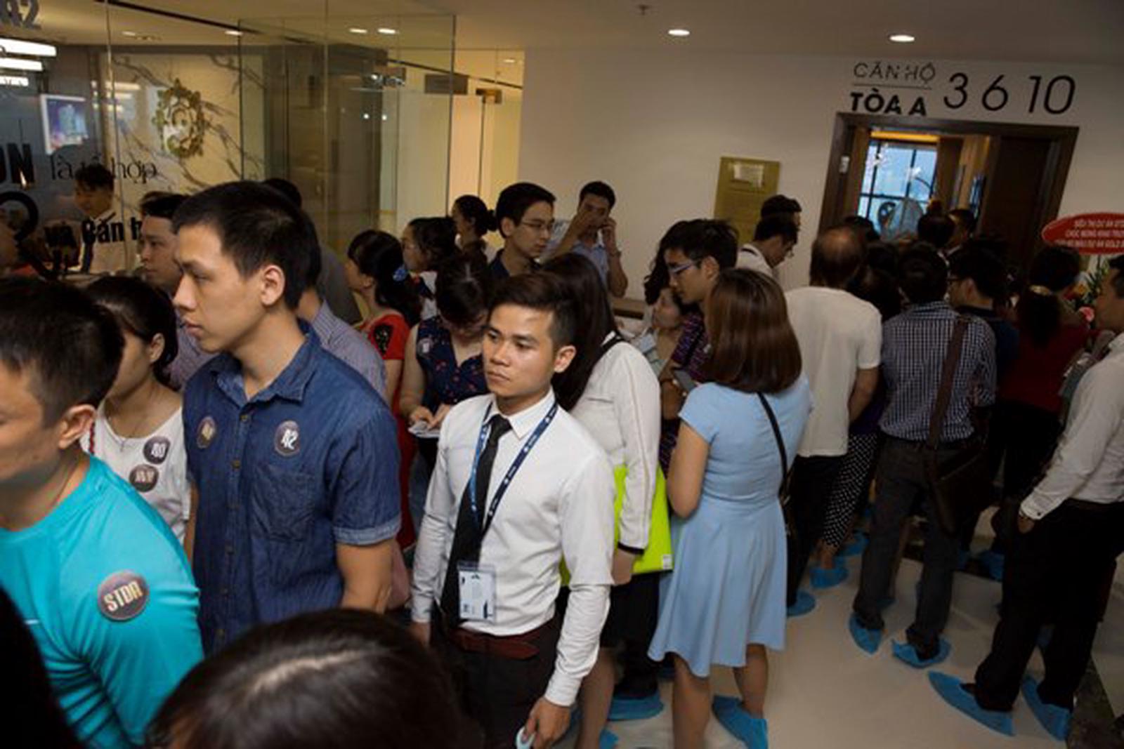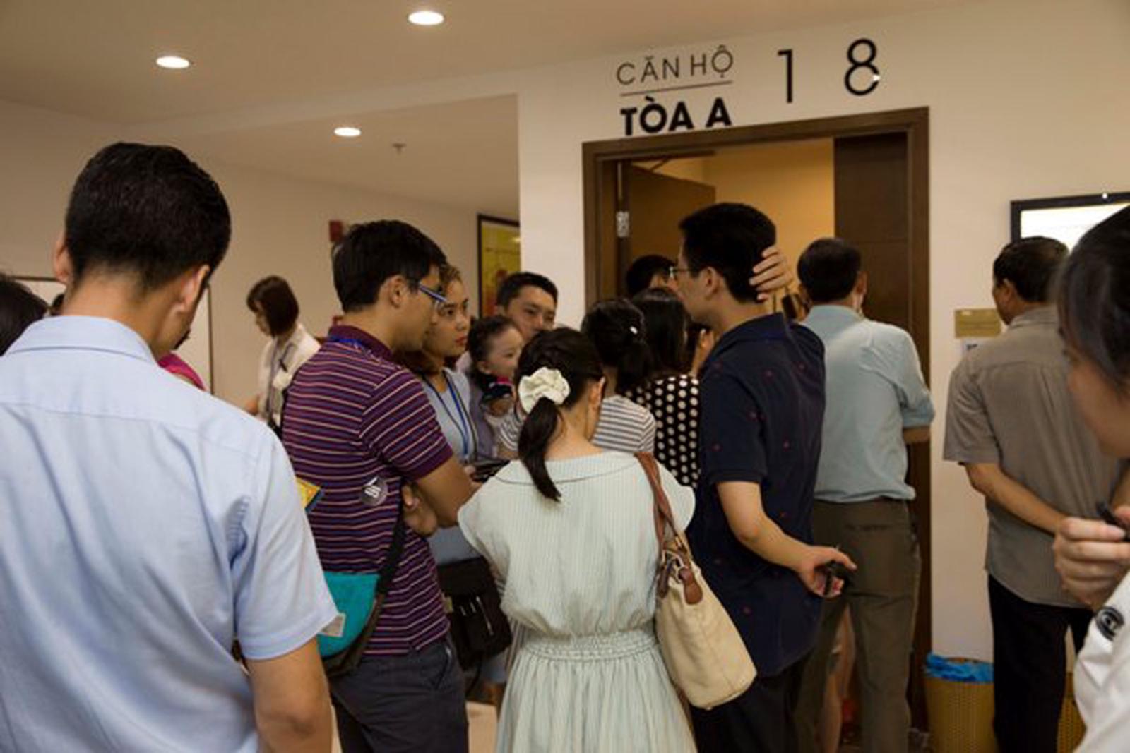 Khách hàng kiên nhẫn xếp hàng chờ đến lượt vào xem căn hộ mẫu