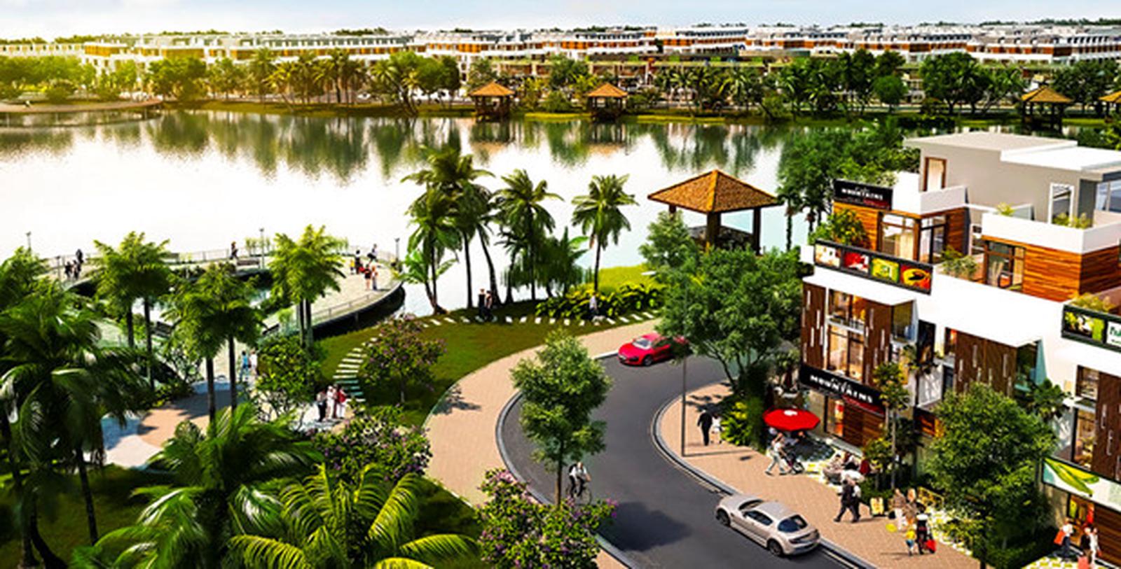 Phối cảnh phân khu biệt thự bờ hồ - Diamond Villa và nhà phố thương mại Hamall Shophouse của dự án Hamilton Garden
