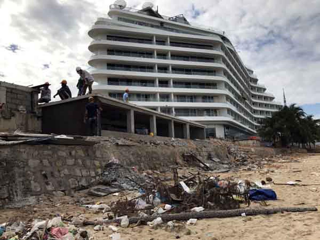 Ngay cả những con đường dân sinh đi xuống biển cũng gần như bị bịt kín, những vườn xoài, vườn dừa lần lượt bị chặt bỏ để lấy đất làm du lịch theo phong trào người người làm nhà nghỉ, doanh nghiệp nối đuôi nhau xây dựng khách sạn bình dân lẫn cao cấp. Vì giá đất được công bố là hàng chục triệu đồng/m2 tùy vị trí có biển hay không có biển nên sau khi bỏ hàng chục tỷ đồng mua đất thì các ông chủ mới đã tìm mọi cách để nâng tầng, lấn chiếm không gian biển với mục đích tăng diện tích phòng để nhanh chóng thu lại số tiền đã bỏ ra.