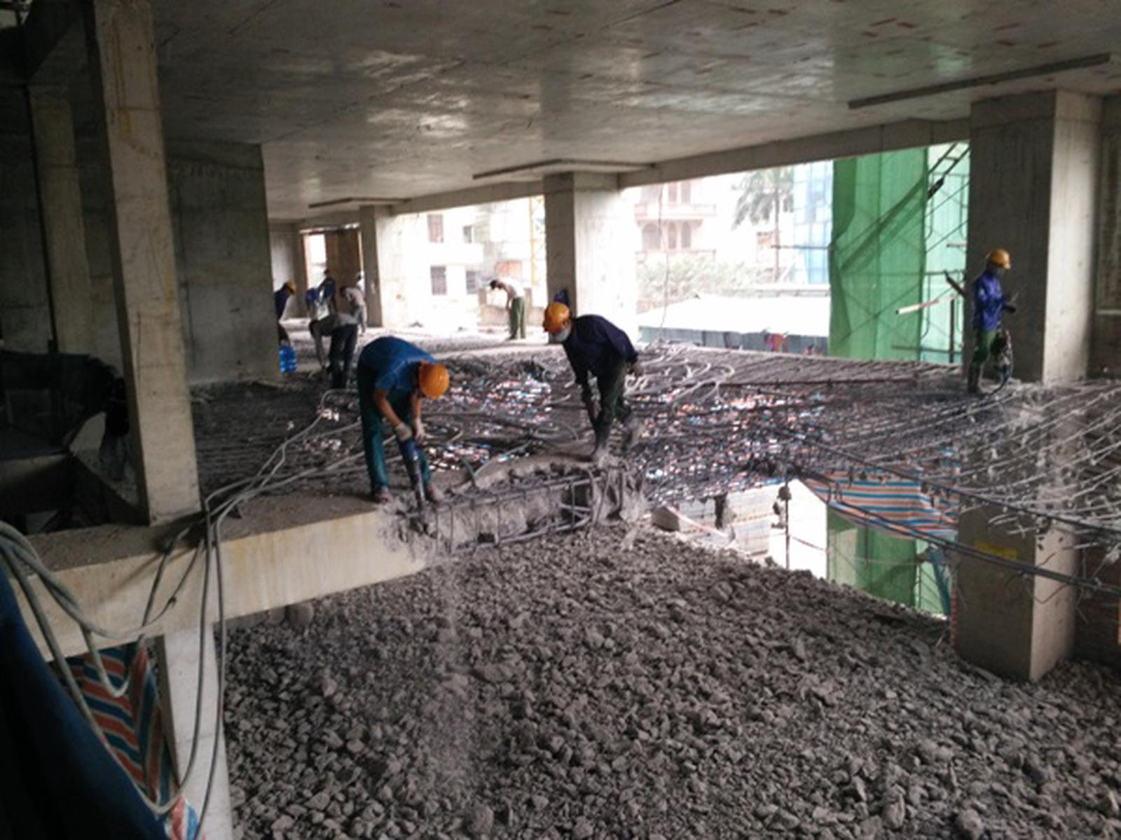 Theo quan sát của PV, hiện chủ đầu tư đang thuê 2 máy nén khí, mỗi máy 8 đầu khoan và một lực lượng khá đông để khắc phục sai phạm.