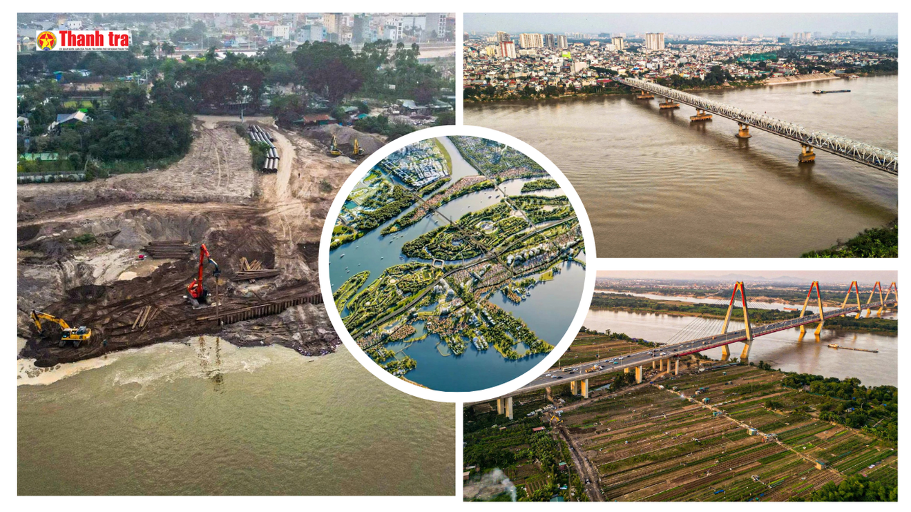 Khu vực đê sông Hồng và phối cảnh Trục đại lộ cảnh quan sông Hồng - không gian phát triển mới được Hà Nội định hướng gắn với bảo đảm an toàn phòng, chống lũ và phát triển bền vững. Ảnh: Đông Hà - Đắc Huy