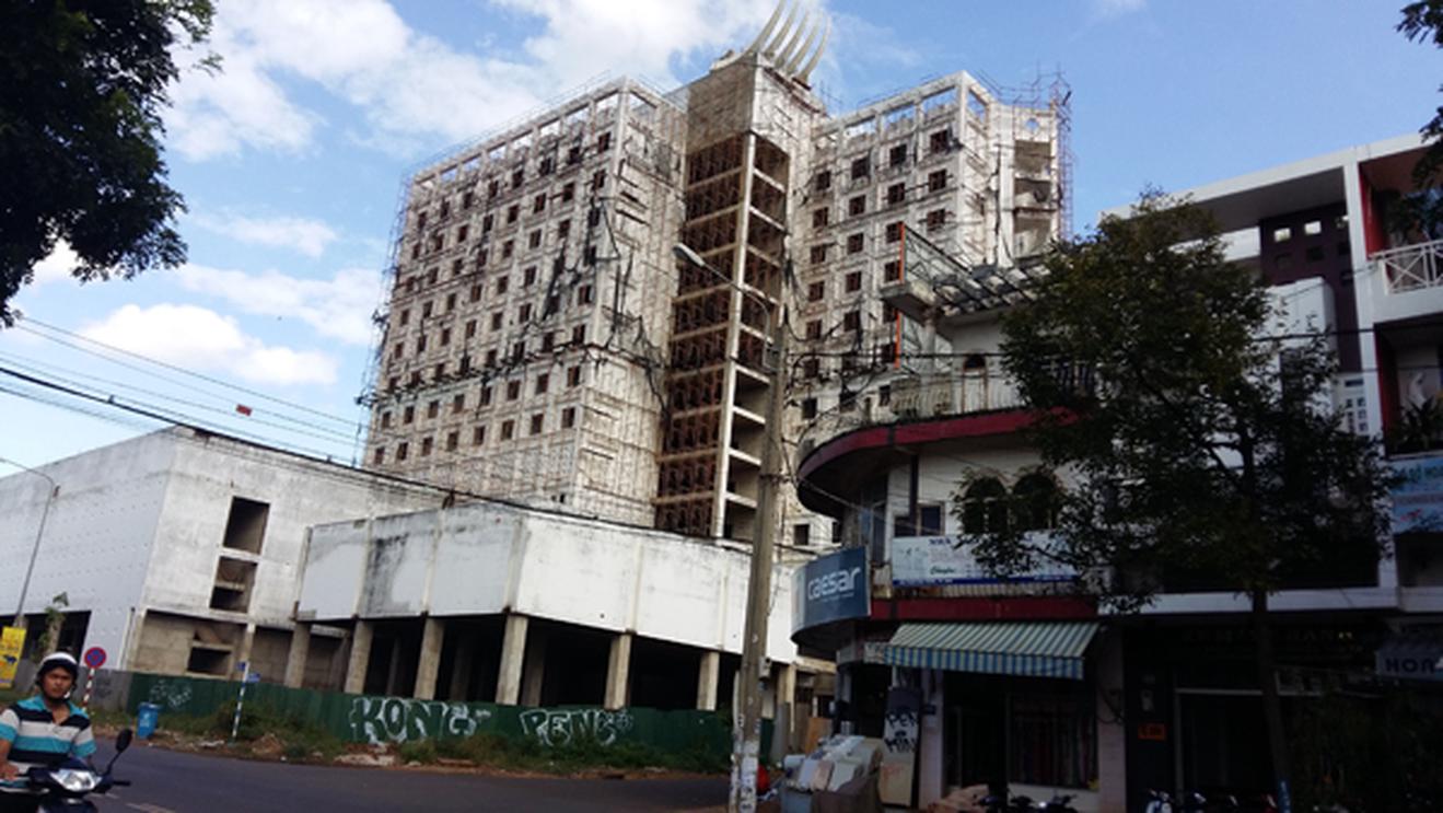 Dự án Xây dựng Trung tâm Văn hóa Thương mại, dịch vụ tổng hợp Đắk Lắk Center đã dừng xây dựng trong thời gian dài. Ảnh: QA