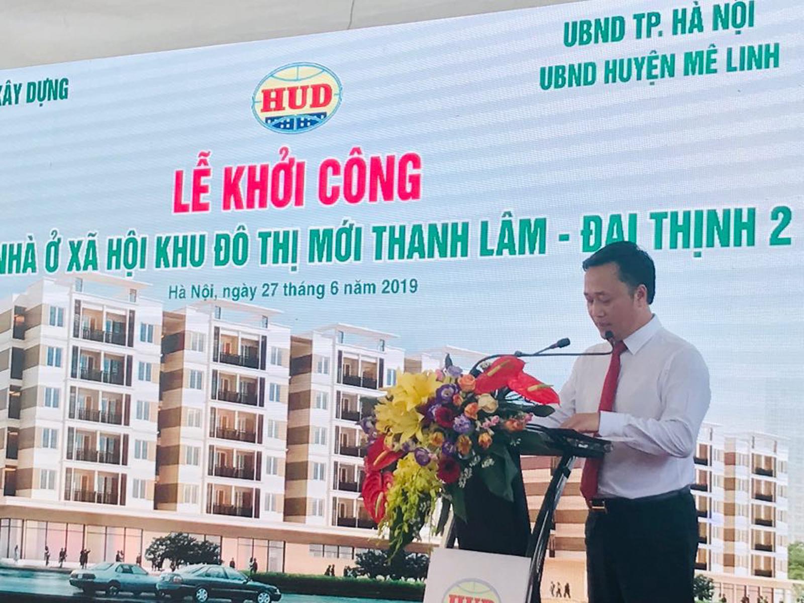 Phát biểu tại Lễ khởi công, ông Nguyễn Việt Hùng, Chủ tịch Hội đồng thành viên Tổng Công ty HUD cho biết: Dự án NƠXH tại KĐTM Thanh Lâm – Đại Thịnh 2 có quy mô 5,2ha, bao gồm 14 khối nhà, cao 6 tầng với quy mô 1.030 căn hộ. Các căn hộ có diện tích từ 52m2 đến 69m2 với giá bán dự kiến khoảng 8 triệu đồng/m2 sẽ được xây dựng và hoàn thành từ nay đến năm 2021.