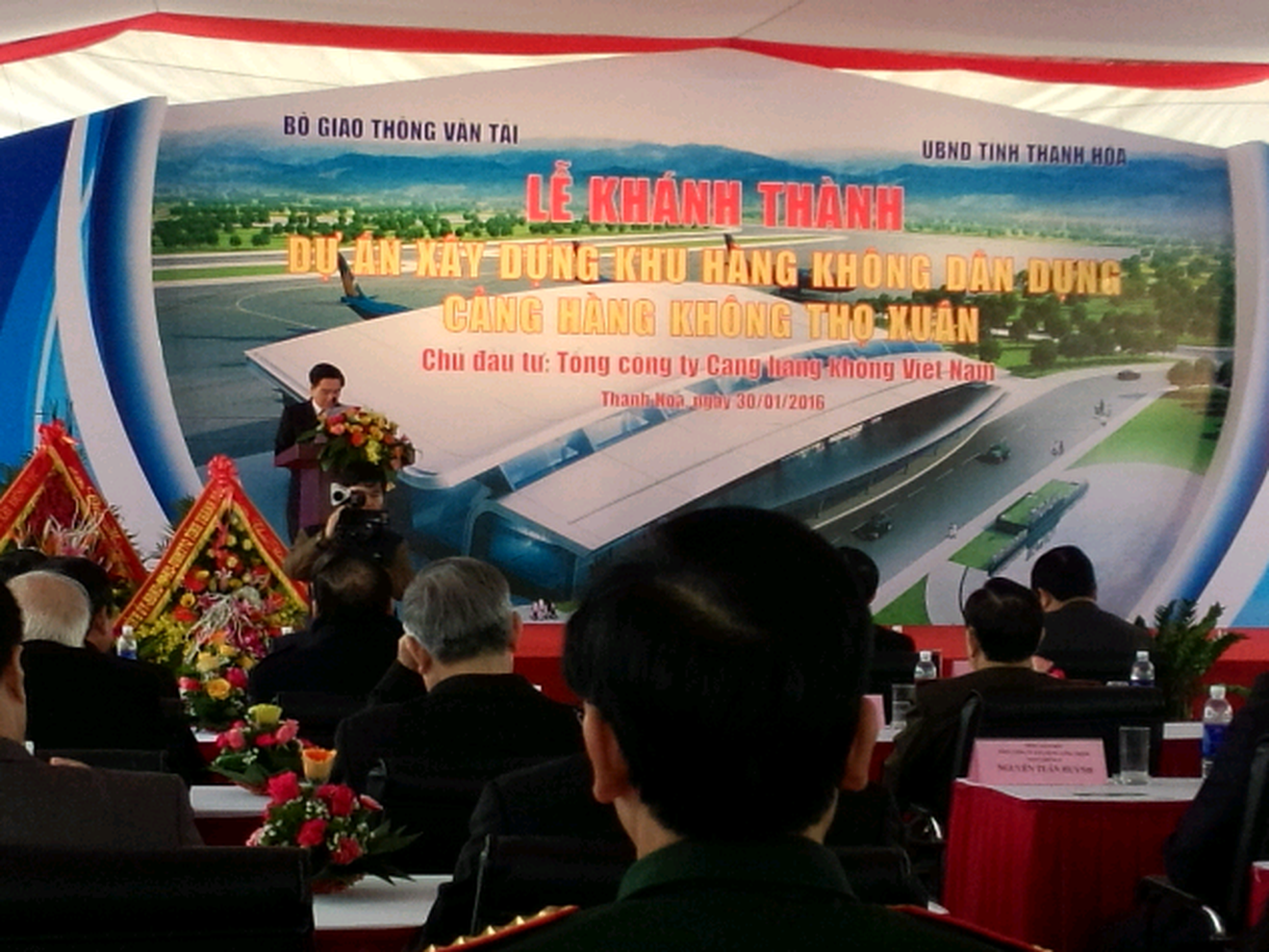 (Thanh tra) - Ngày 30/1, tại Cảng hàng không Thọ Xuân, tỉnh Thanh Hóa, Tổng Công ty Cảng hàng không Việt Nam (ACV) tổ chức Lễ khánh thành Dự án Xây dựng Khu hàng không dân dụng - Cảng hàng không Thọ Xuân, đưa vào phục vụ nhân dân dịp Tết Nguyên đán Bính Thân 2016.