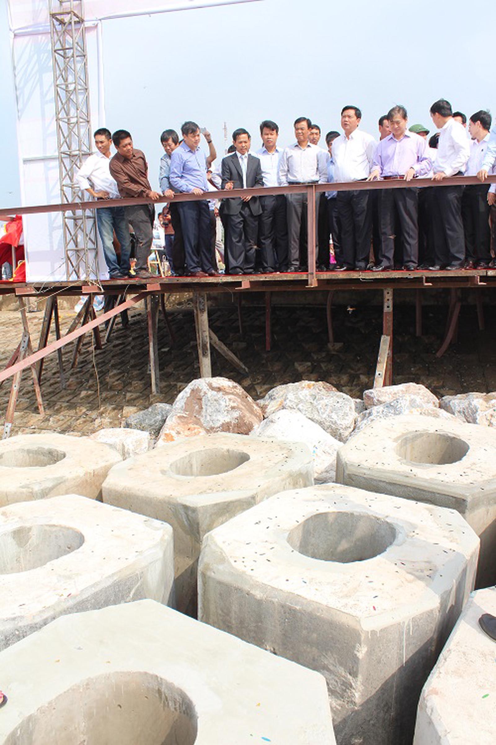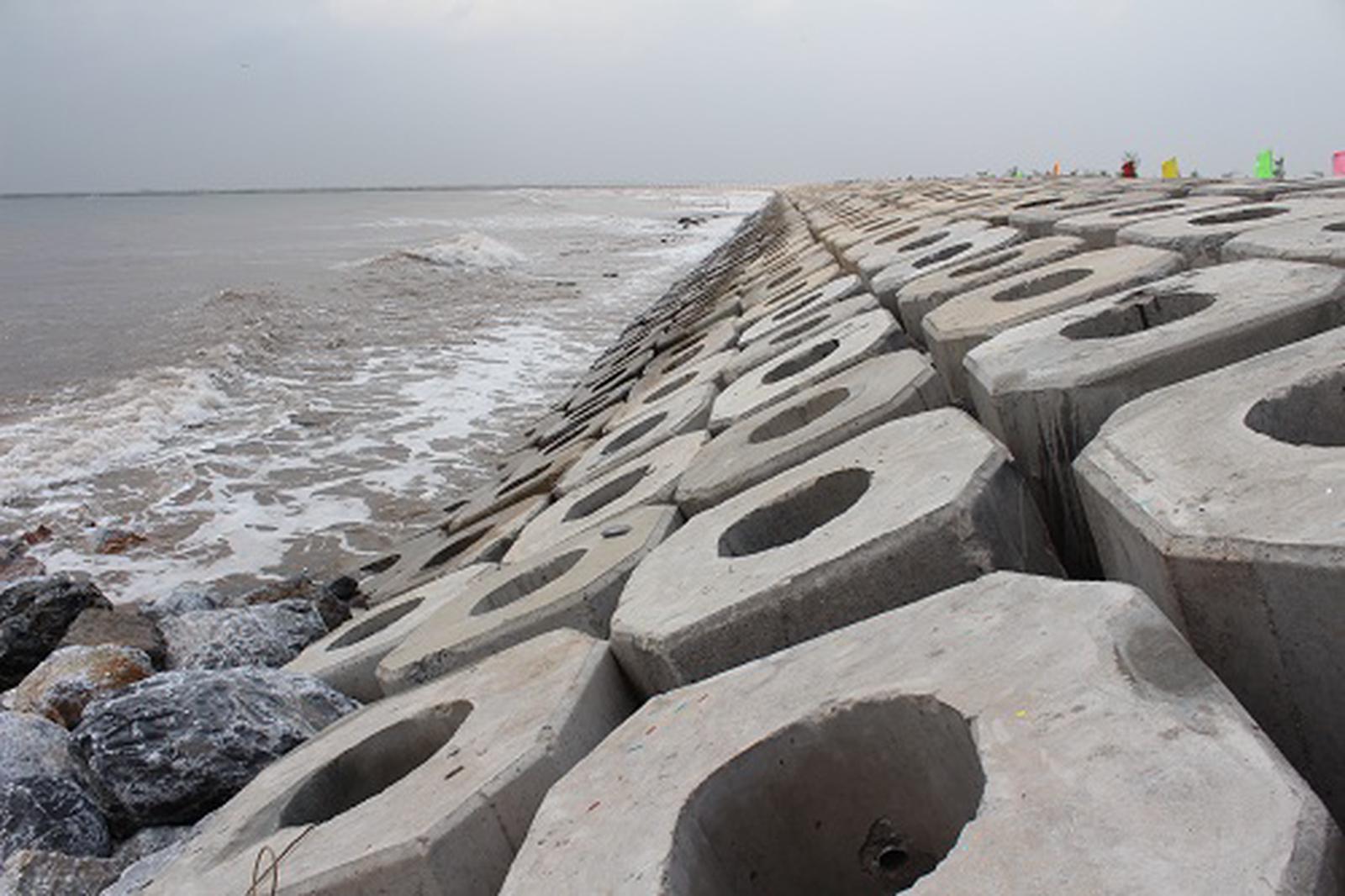 Một góc cụm công trình được xây dựng đê biển kéo dài. Ảnh:H.O