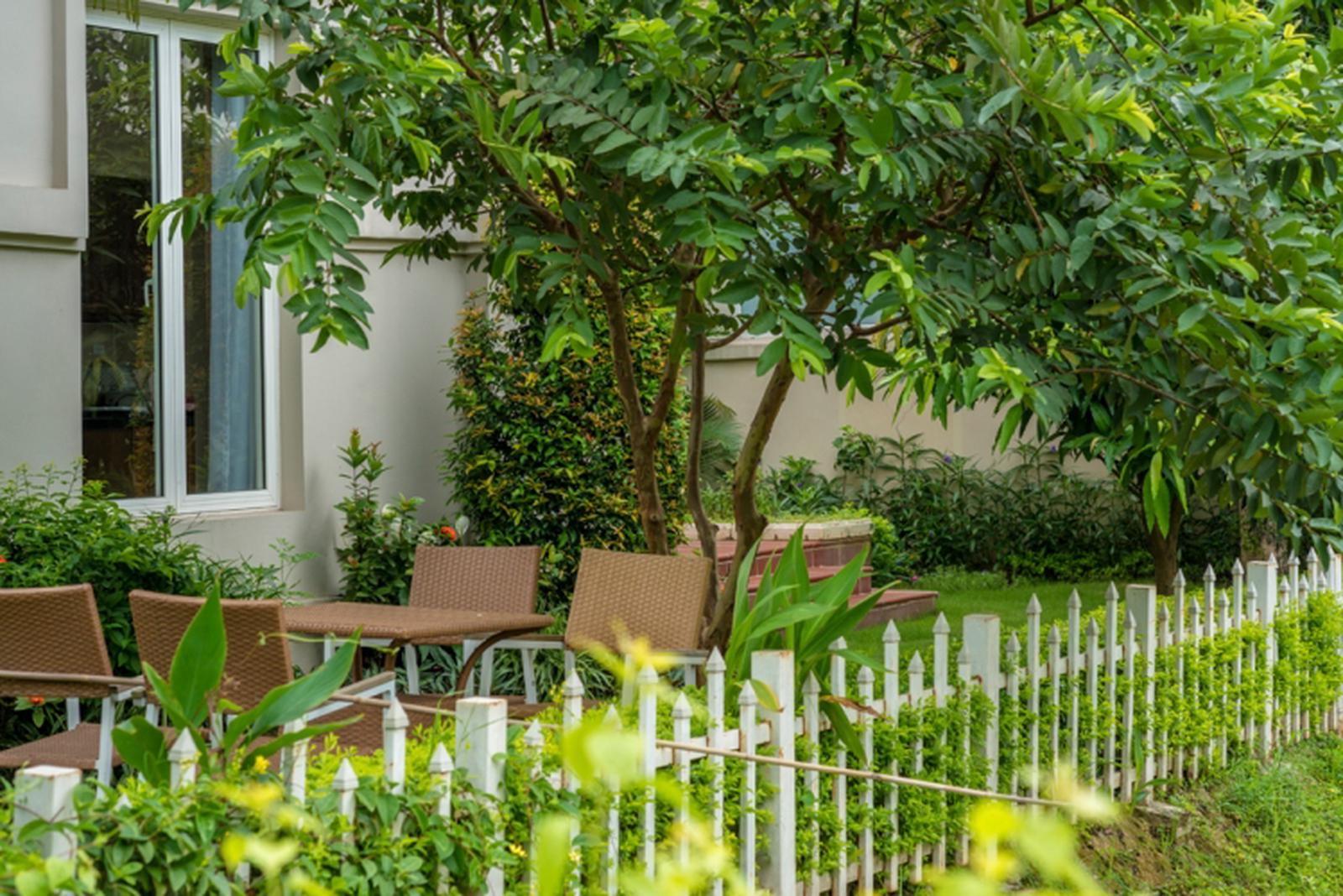 Một góc vườn tại Biệt thự Vinhomes Riverside nơi gia đình có thể uống cà phê hay thư giãn câu cá