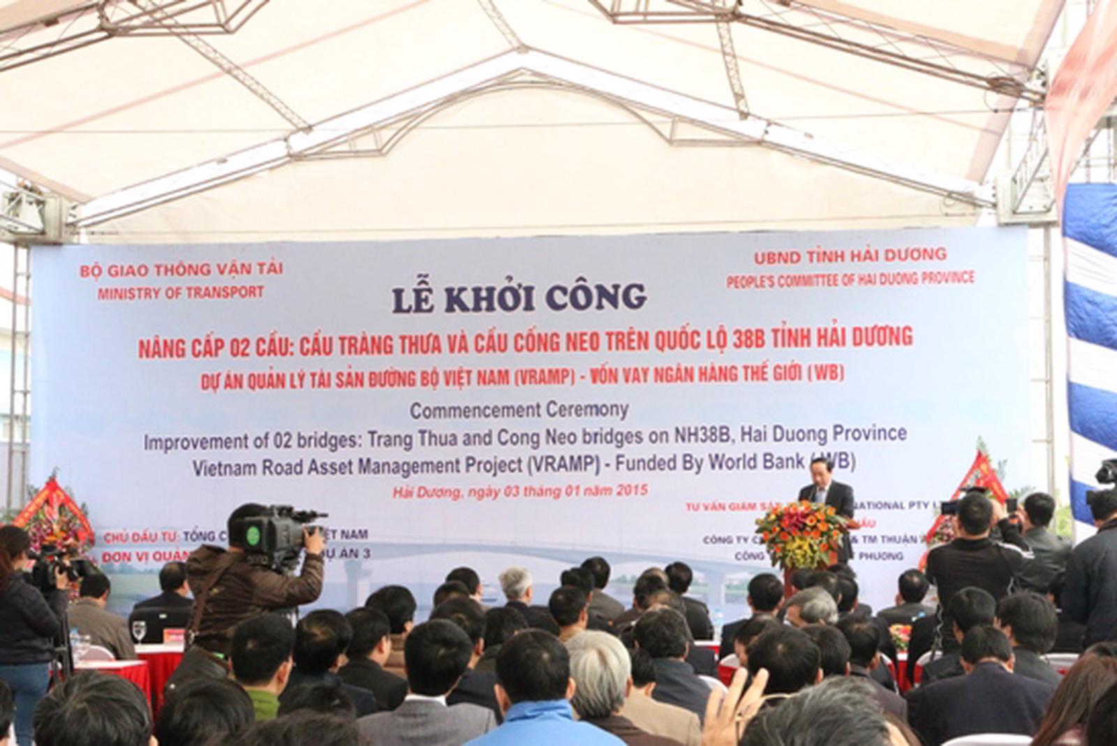 (Thanh tra) - Ngày 03/01/2015, Tổng cục Đường bộ Việt Nam đã khởi công Gói thầu Nâng cấp cầu Tràng Thưa và cầu Cống Neo trên QL38B tỉnh Hải Dương thuộc Dự án Quản lý tài sản đường bộ Việt Nam (RAMP) có tổng mức đầu tư 6.305 tỷ đồng. Đây cũng hoạt động đầu tư xây dựng "mở hàng" trong năm 2015 từ Hiệp định vay vốn Ngân hàng thế giới (WB).