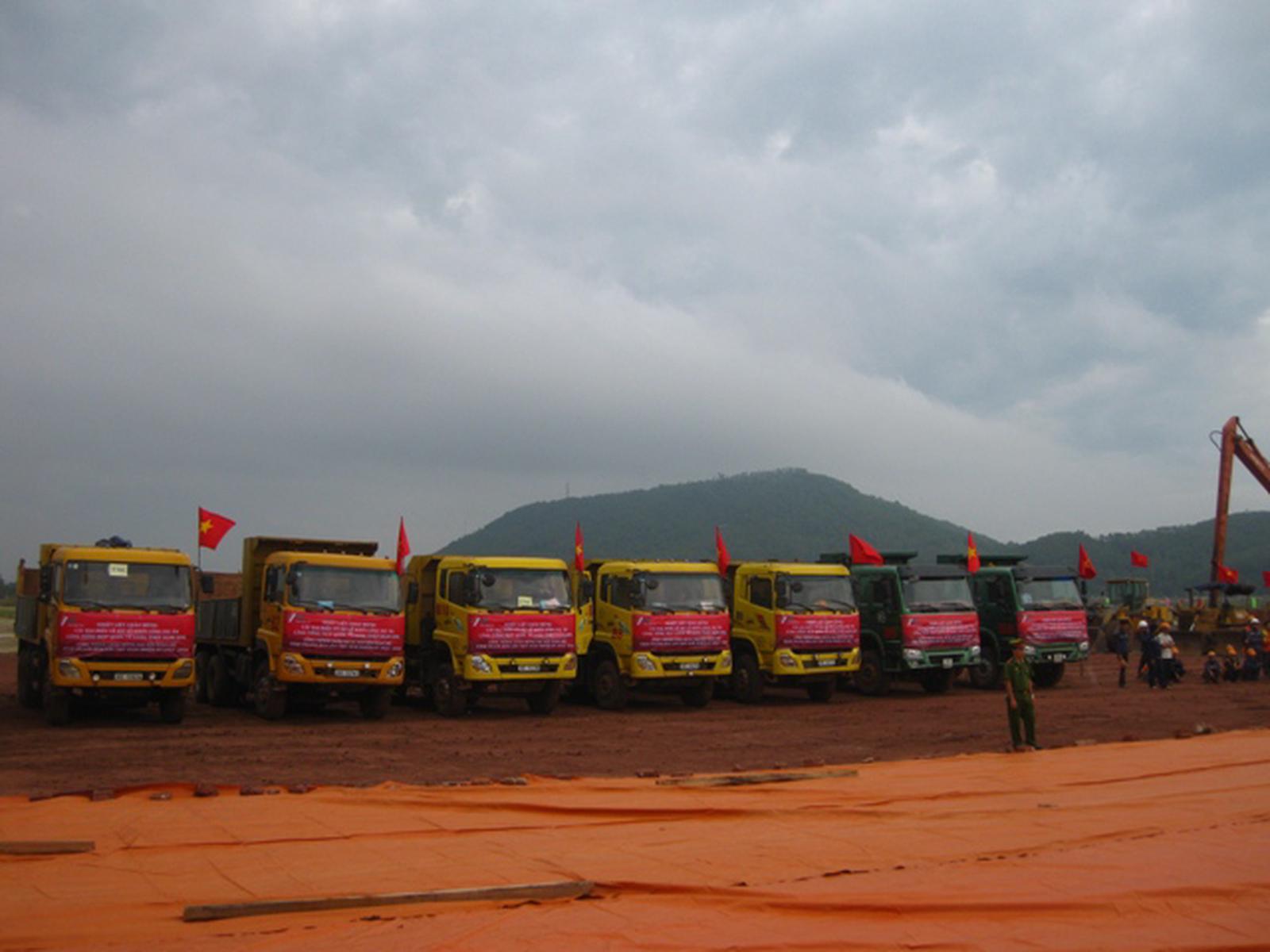 Nhiều máy móc được điều động đến phục vụ cho lễ khởi công dự án. Ảnh: Văn Thanh