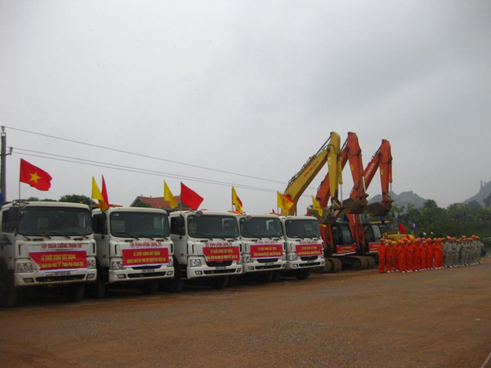 Máy móc được huy động đến phục vụ lễ khởi công. Ảnh: Văn Thanh