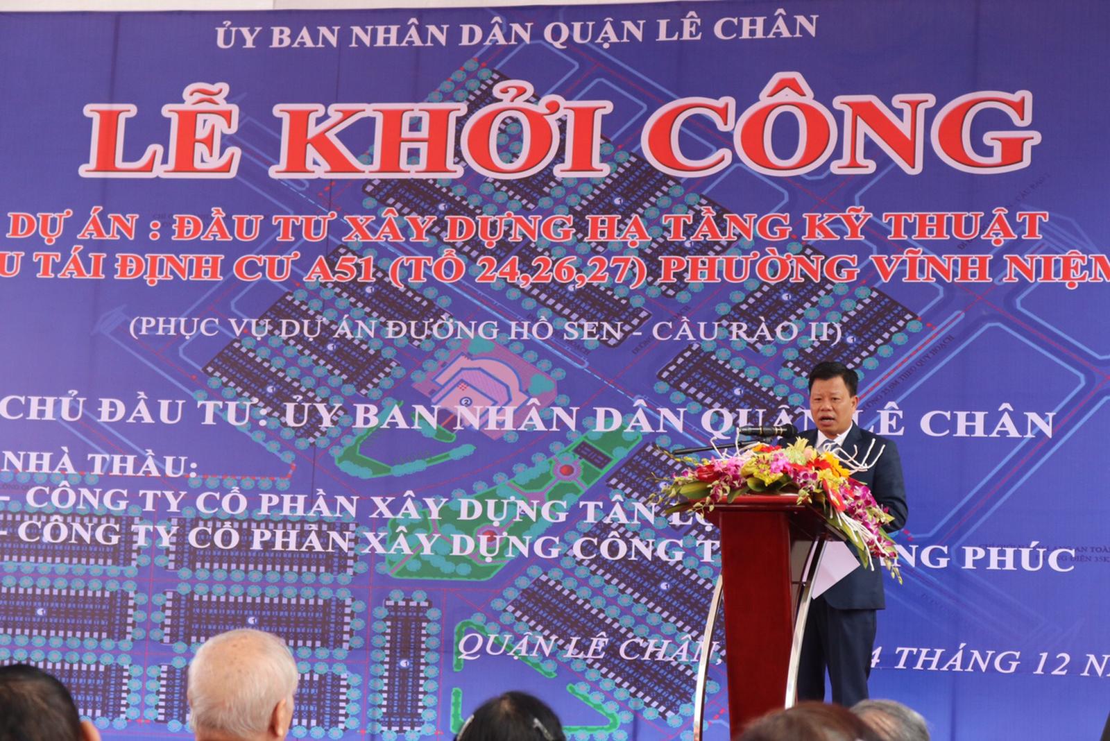 Phát biểu tại khởi công, Bí thư Quận ủy Lê Chân Lê Trung Kiên nhấn mạnh, thời gian qua quận Lê Chân đã tập trung cao cho công tác giải phóng mặt bằng để bàn giao cho các nhà thầu triển khai Dự án nhằm góp phần đẩy nhanh tiến độ hoàn thành Dự án Tuyến đường Hồ Sen - Cầu Rào 2.