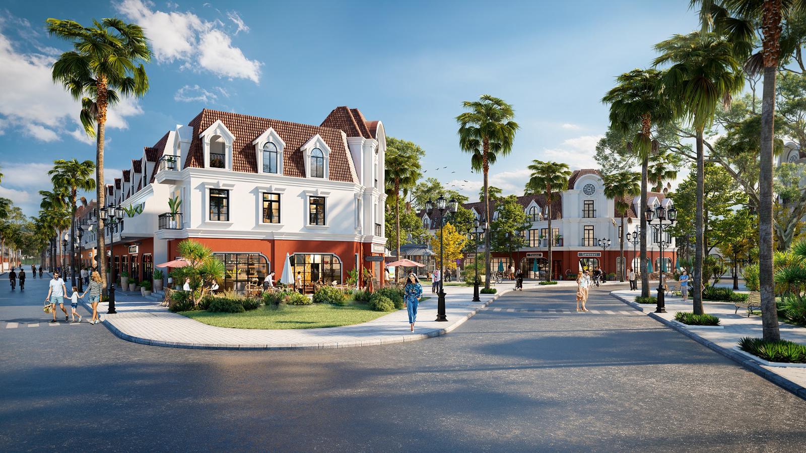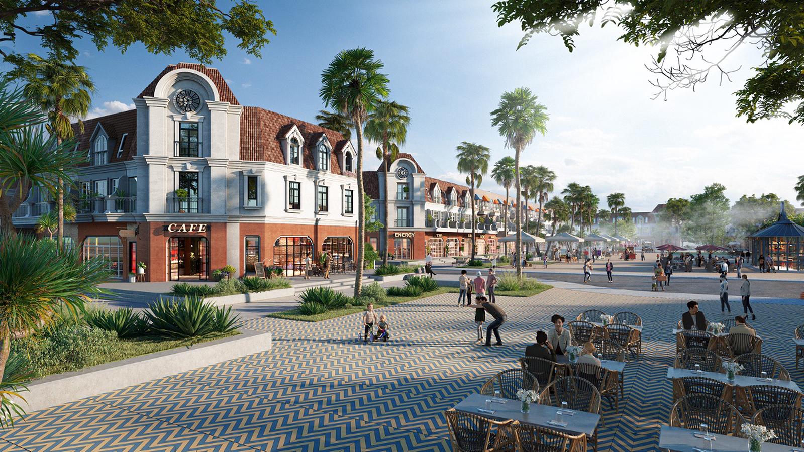 Không gian mua sắm tại shophouse biển Ocean Resicence được quy hoạch với mảng xanh bao phủ và toạ lạc ở các vị trí đắc địa. Ảnh: Novaland