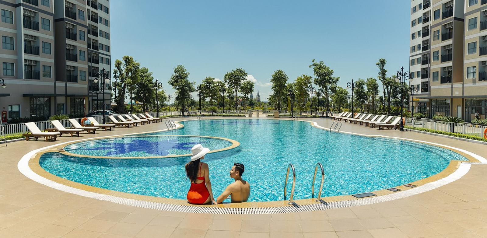 Bể bơi rộng tới 1000m2 ngay dưới chân tòa nhà mang tới đặc quyền thư giãn cao cấp “như resort” chưa từng có tại Hà Tĩnh cho cư dân C2