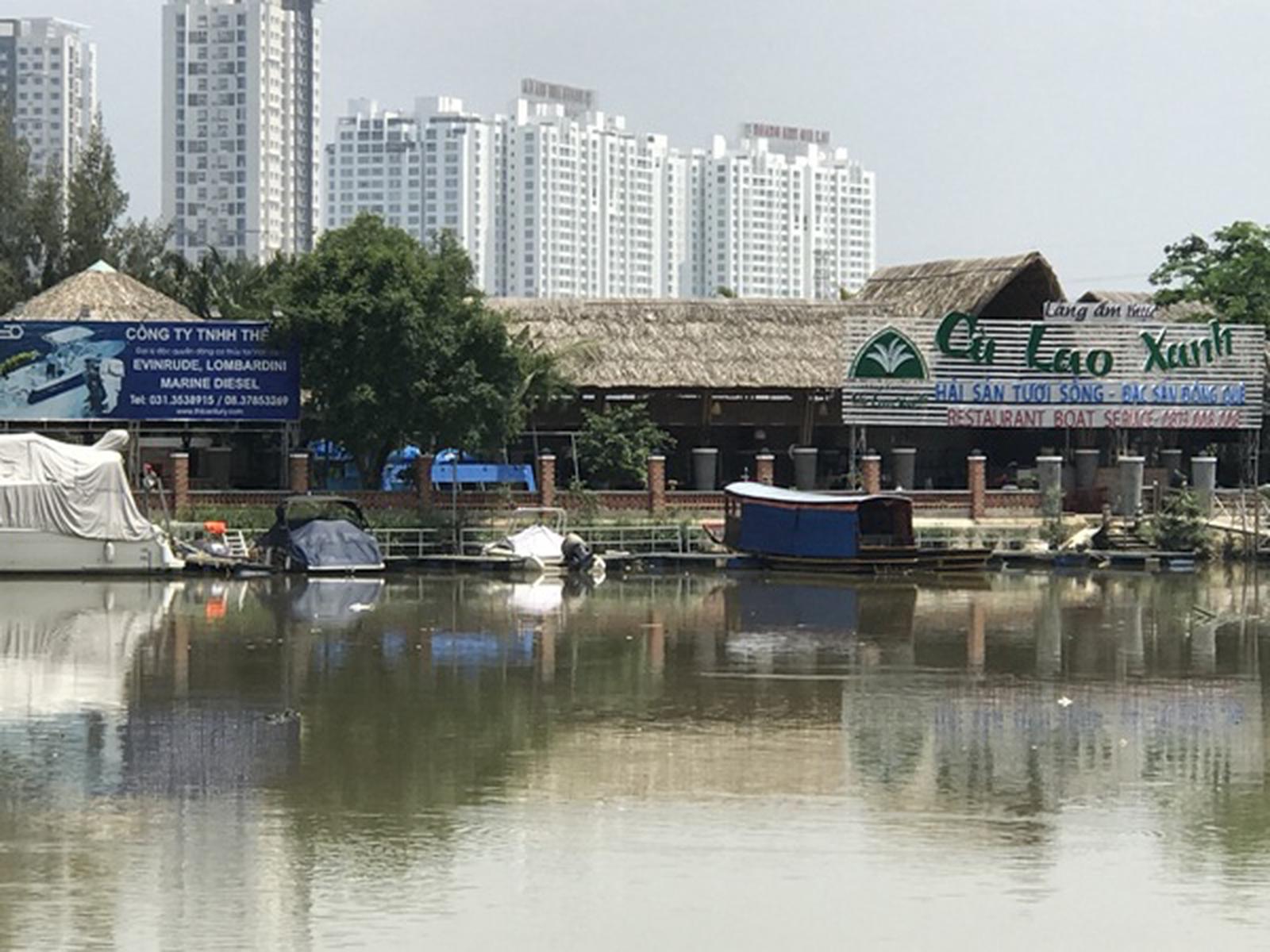 Đối diện khu đô thị mới Phú Mỹ Hưng, phía bên kia rạch ông Kích thuộc địa bàn huyện Nhà Bè là công trình quán nhậu và bãi du thuyền nằm sừng sững như thách thức dư luận. Theo phản ánh của người dân, quán nhậu có tên là Làng Ẩm thực cù lao xanh và bến đậu du thuyền này là của các đại gia mở ra để phục vụ nhu cầu bàn chuyện kinh doanh bất động sản. Còn xuôi xuống hạ nguồn gần cầu Rạch Đỉa là sân tập golf và một số hạng mục xây dựng nằm trong khu dự án bất động sản của nhiều đại gia vẫn chưa được xử lý đúng quy định.
