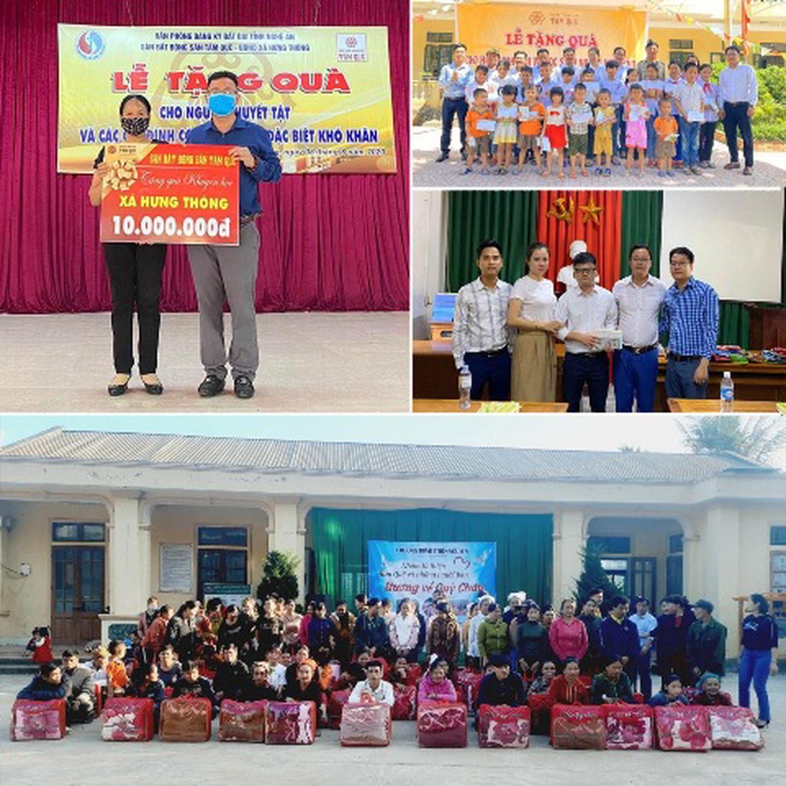 Khi dịch Covid -19 bùng phát quỹ từ thiện Tâm Quê đã dành hàng trăm triệu đồng tặng khẩu trang, nước diệt khuẩn cho bà con và dành hơn 100 triệu đồng tặng quà tại các huyện Lộc Hà, Vũ Quang (Hà Tĩnh), Hưng Nguyên (Nghệ An).