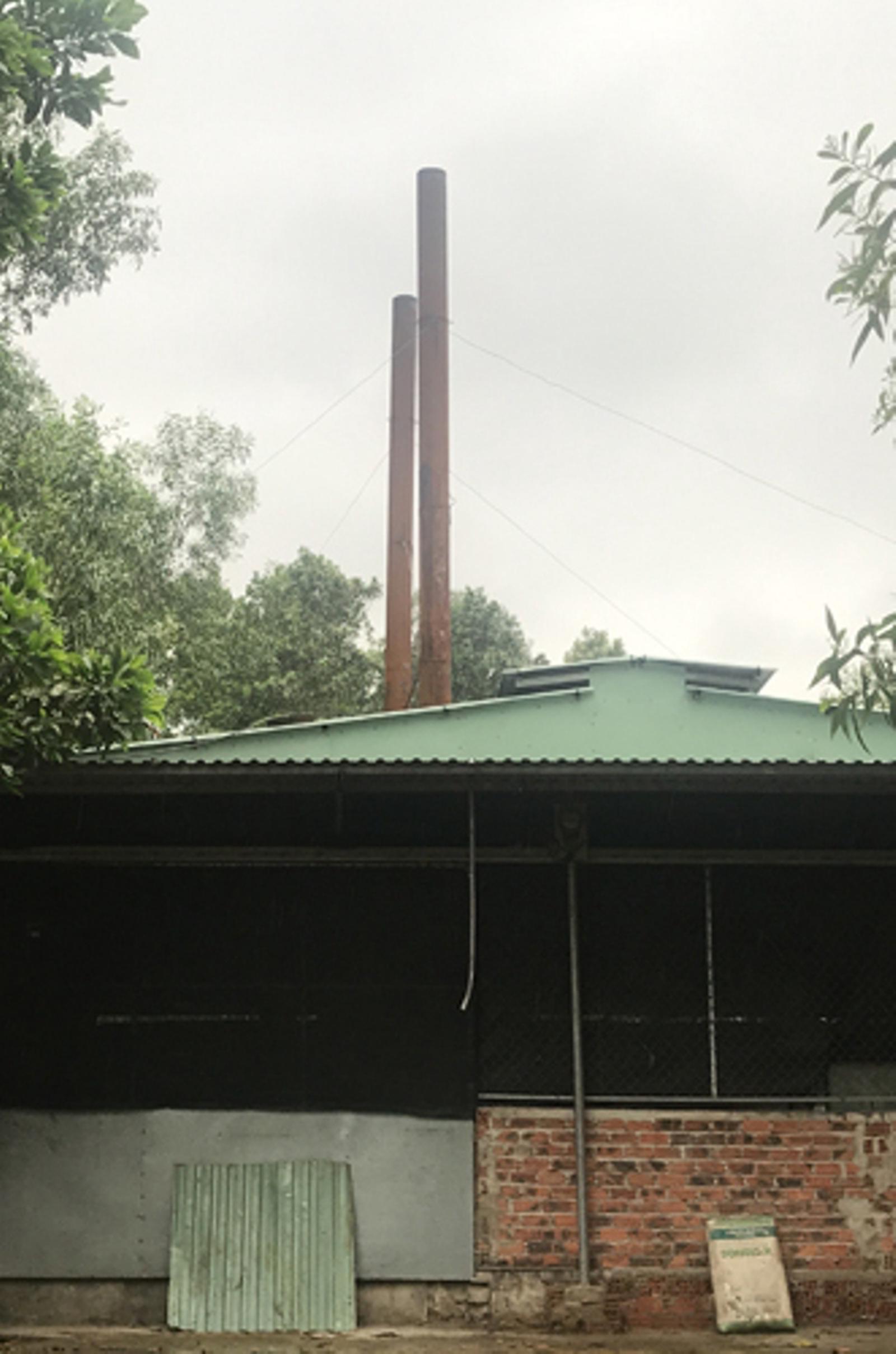 Dù ống khói cơ sở chế biến mỡ đã được nâng cao, nhưng vẫn chưa hết mùi hôi. Ảnh: ĐB