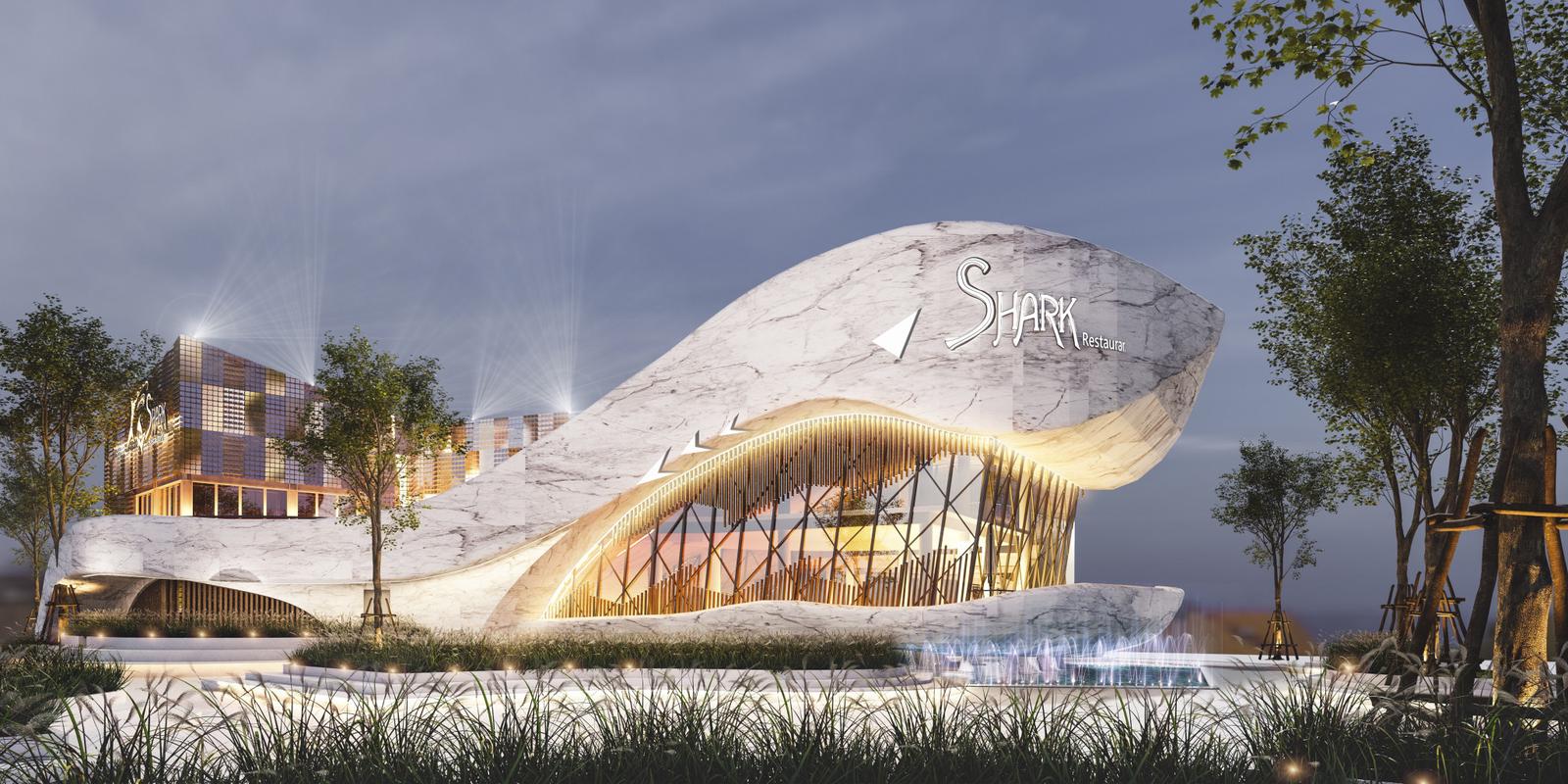 Du khách yêu cái đẹp sẽ khó lòng bỏ qua The Shark - nhà hàng tái hiện hình ảnh cá mập đang vươn mình ra biển khơi. Hệ cửa kính cao cho tầm nhìn rộng mở, thu trọn tiếng sóng biển rì rào, tạo cảm giác như hòa mình vào thiên nhiên, mở ra trải nghiệm khó quên. The Shark dự kiến đón khách vào tháng 1/2022.