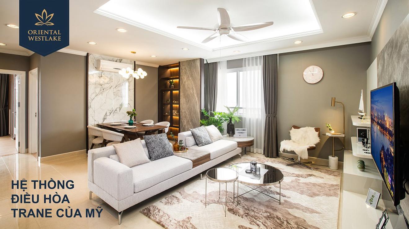 Các căn hộ của Oriental Westlake được thiết kế thông minh, mang phong cách châu Âu hiện đại, có diện tích đa dạng từ 55 m2 đến 116 m2 với 1 đến 3 phòng ngủ.