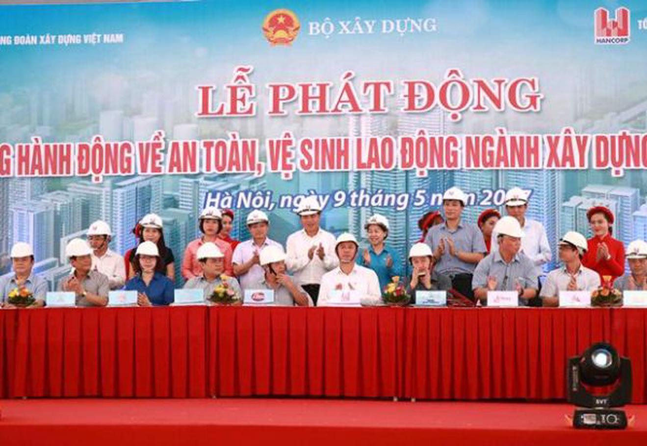 Tại buổi lễ, lãnh đạo các Tổng công ty trong ngành Xây dựng đã ký giao ước thi đua thực hiện tốt công tác an toàn, vệ sinh lao động với những nội dung: Tăng cường công tác thông tin, tuyên truyền về chủ trương, chính sách của Đảng, pháp luật của Nhà nước và các văn bản hướng dẫn của Bộ, ngành về công tác an toàn, vệ sinh lao động trong xây dựng; tổ chức các hoạt động hưởng ứng Tháng hành động về ATVSLĐ với nhiều hình thức phong phú, thiết thực, hiệu quả; Tổ chức hệ thống quản lý an toàn, vệ sinh lao động tại đơn vị theo quy định; xây dựng kế hoạch, chương trình, chi phí tổ chức các hoạt động cụ thể đảm bảo ATVSLĐ, phòng chống cháy nổ trong xây dựng tại mỗi công trình, đơn vị; nâng cao chất lượng các hoạt động bồi dưỡng, huấn luyện kiến thức về an toàn, vệ sinh lao động cho người sử dụng lao động và người lao động để phòng ngừa hiệu quả các sự cố, tai nạn lao động và bệnh nghề nghiệp, xây dựng văn hóa an toàn lao động tại nơi làm việc.