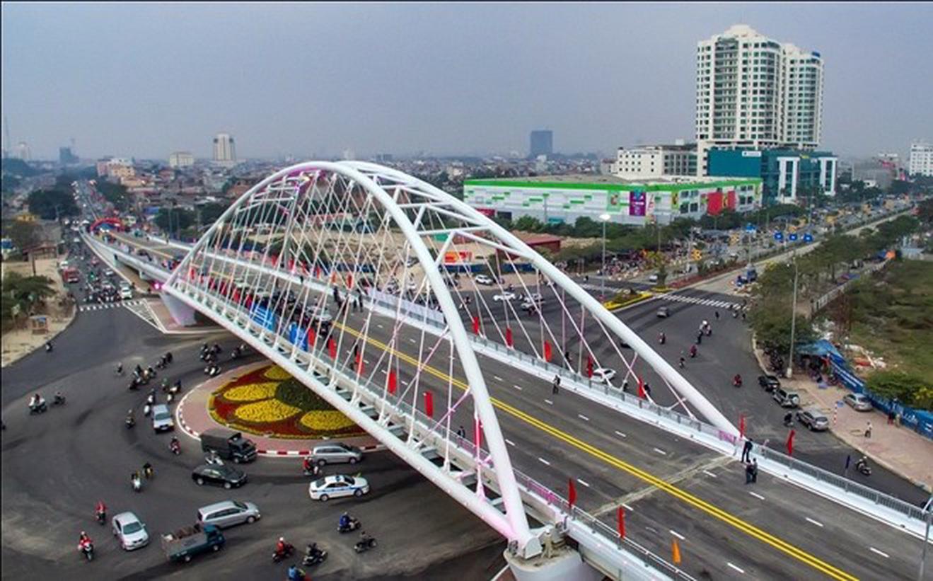Gần 1 năm trước, cây cầu vượt đường bộ đầu tiên tại Việt Nam có nhịp dài gần 100 m đã được thông xe tại nút giao thông đường Lê Hồng Phong - Nguyễn Bỉnh Khiêm, Hải Phòng. (Nguồn: Vingroup)