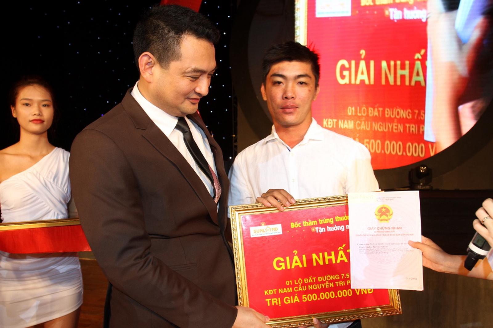 02 giải nhất với mỗi giải là 01 lô đất 100m2 trị giá 500 triệu đồng/lô đã thuộc về ông Phạm Hải Quốc và ông Phạm Hữu Quang Hưng.