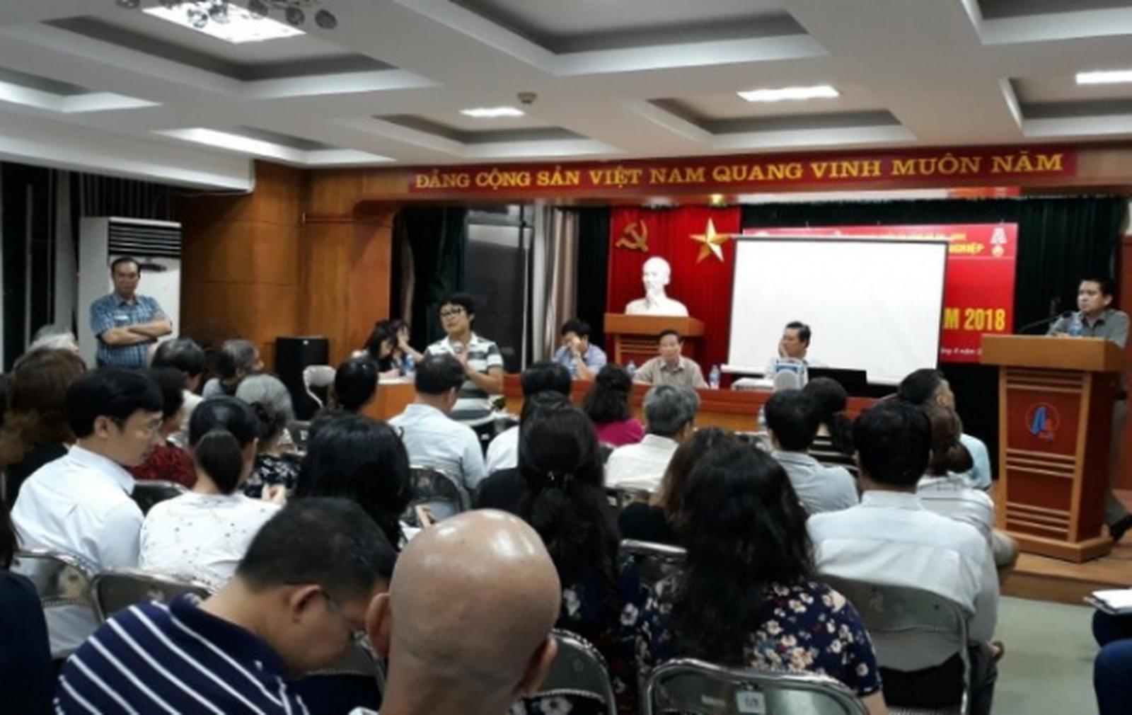Hội nghị nhà chung cư 71 Nguyễn Chí Thanh để lựa chọn đơn vị quản lý, vận hành và cung cấp dịch vụ. Ảnh: TQ