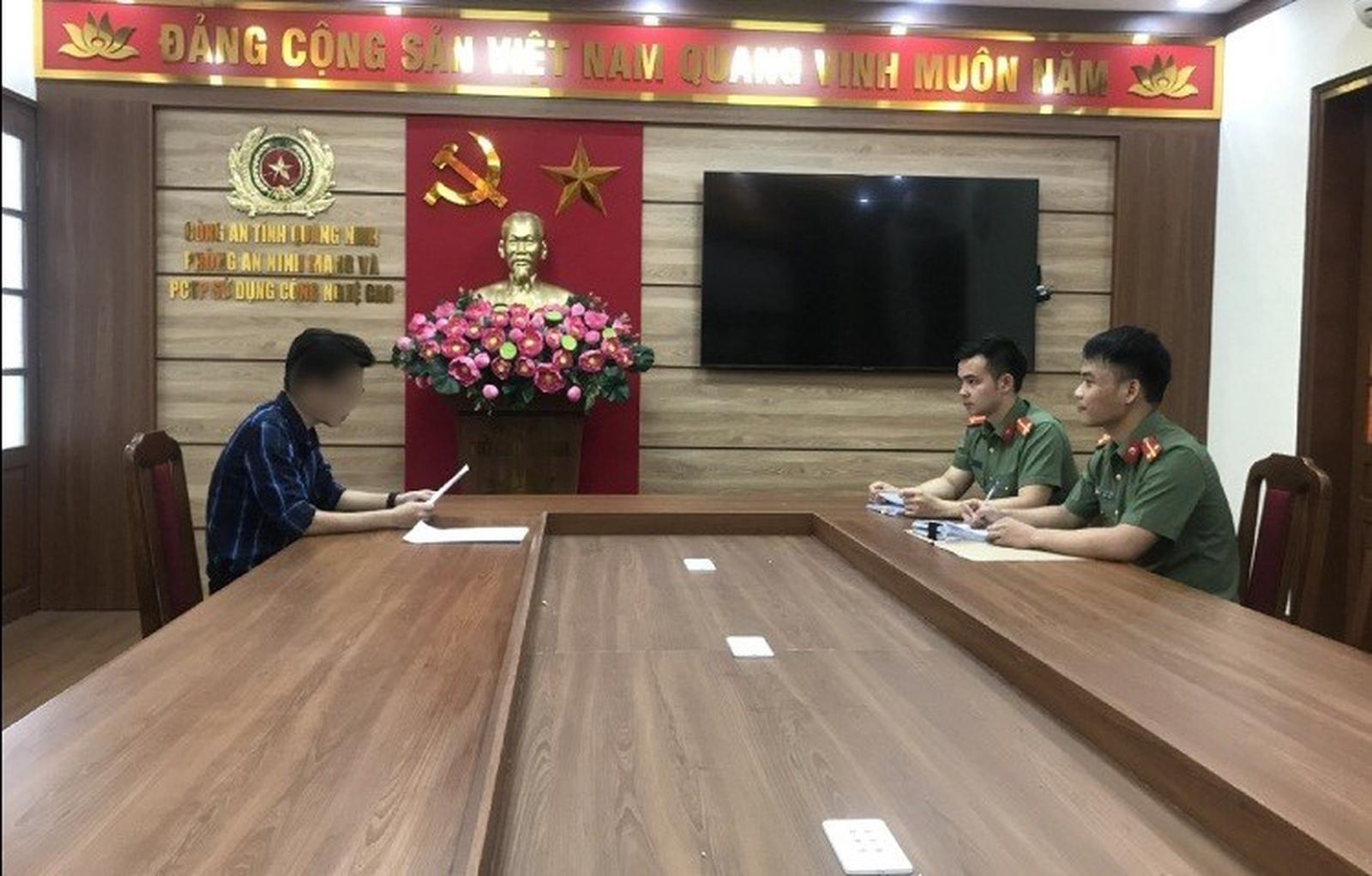 Công dân T.V.L làm việc tại cơ quan công an. Ảnh: TTTT