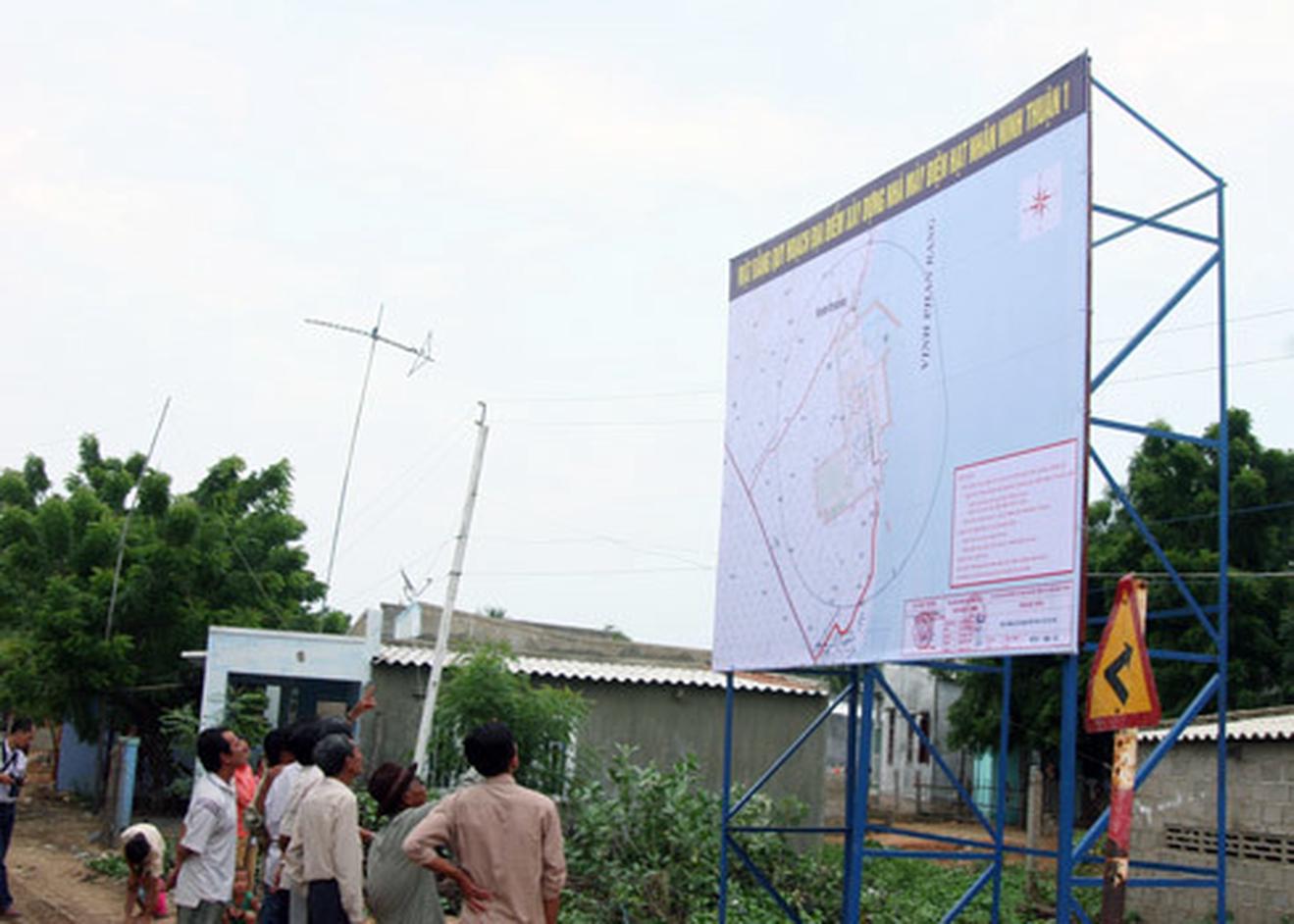Người dân xem bảng quy hoạch dự án điện hạt nhân Ninh Thuận năm 2010. Ảnh: Sơn Ninh
