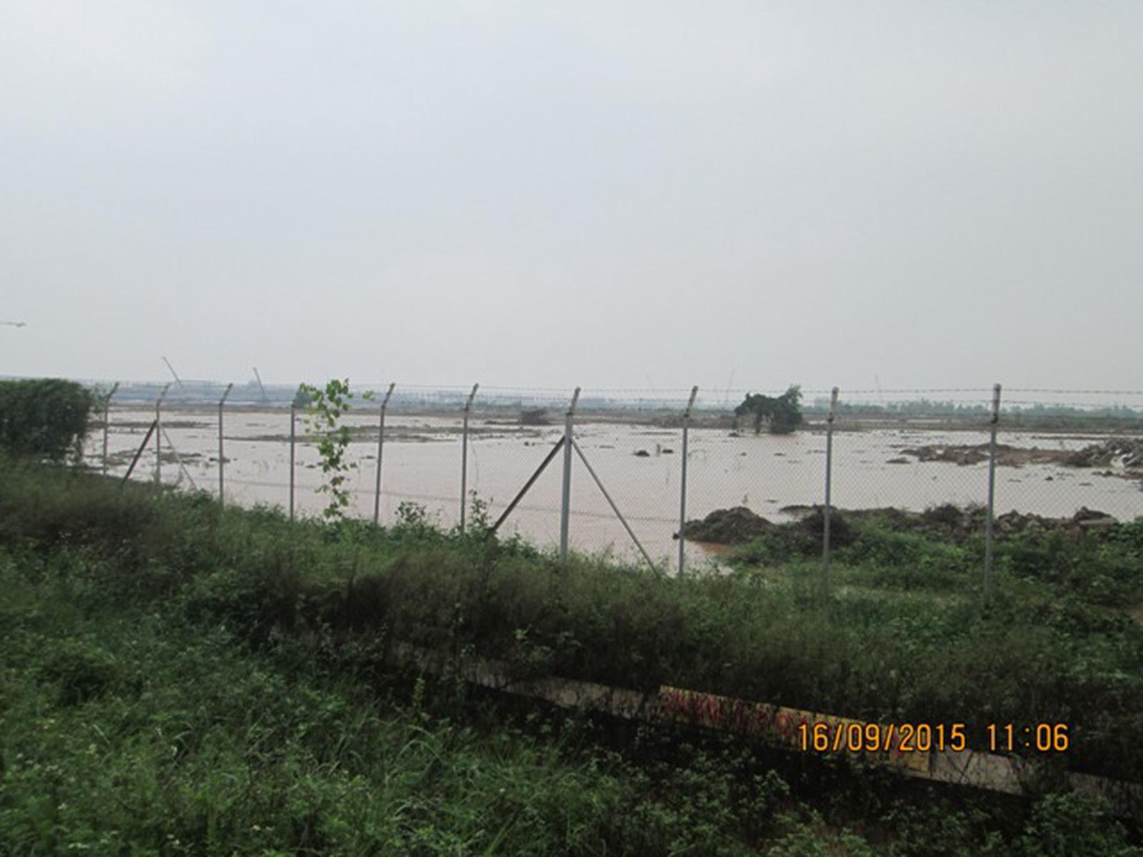 Ngày 16/9, trên địa bàn huyện Tĩnh Gia xuất hiện mưa to, tại mặt bằng Khu C Dự án Lọc Hóa dầu Nghi Sơn nước ứ đọng, khắp nơi biến thành biển nước, rất nguy hiểm.