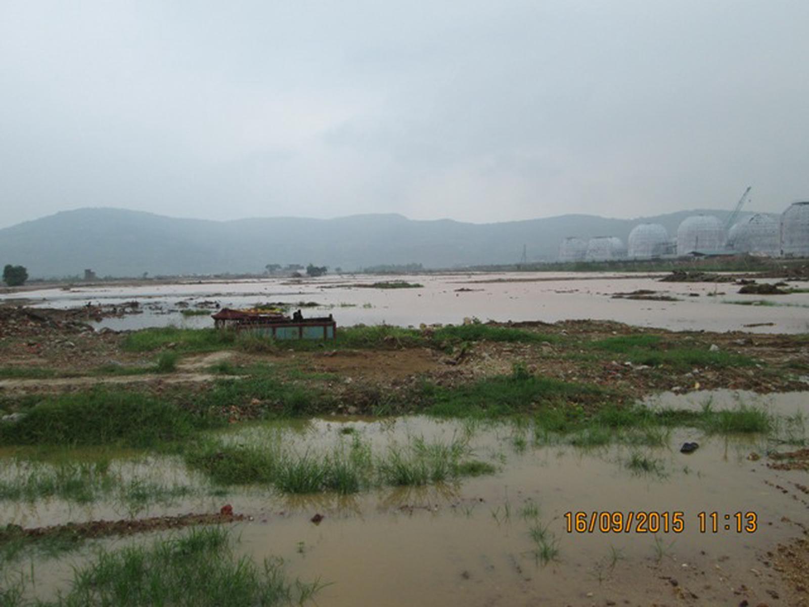 Mặt bằng Khu C Dự án Lọc Hóa dầu Nghi Sơn biến thành biển nước chỉ sau một cơn mưa lớn. Ảnh: Văn Thanh