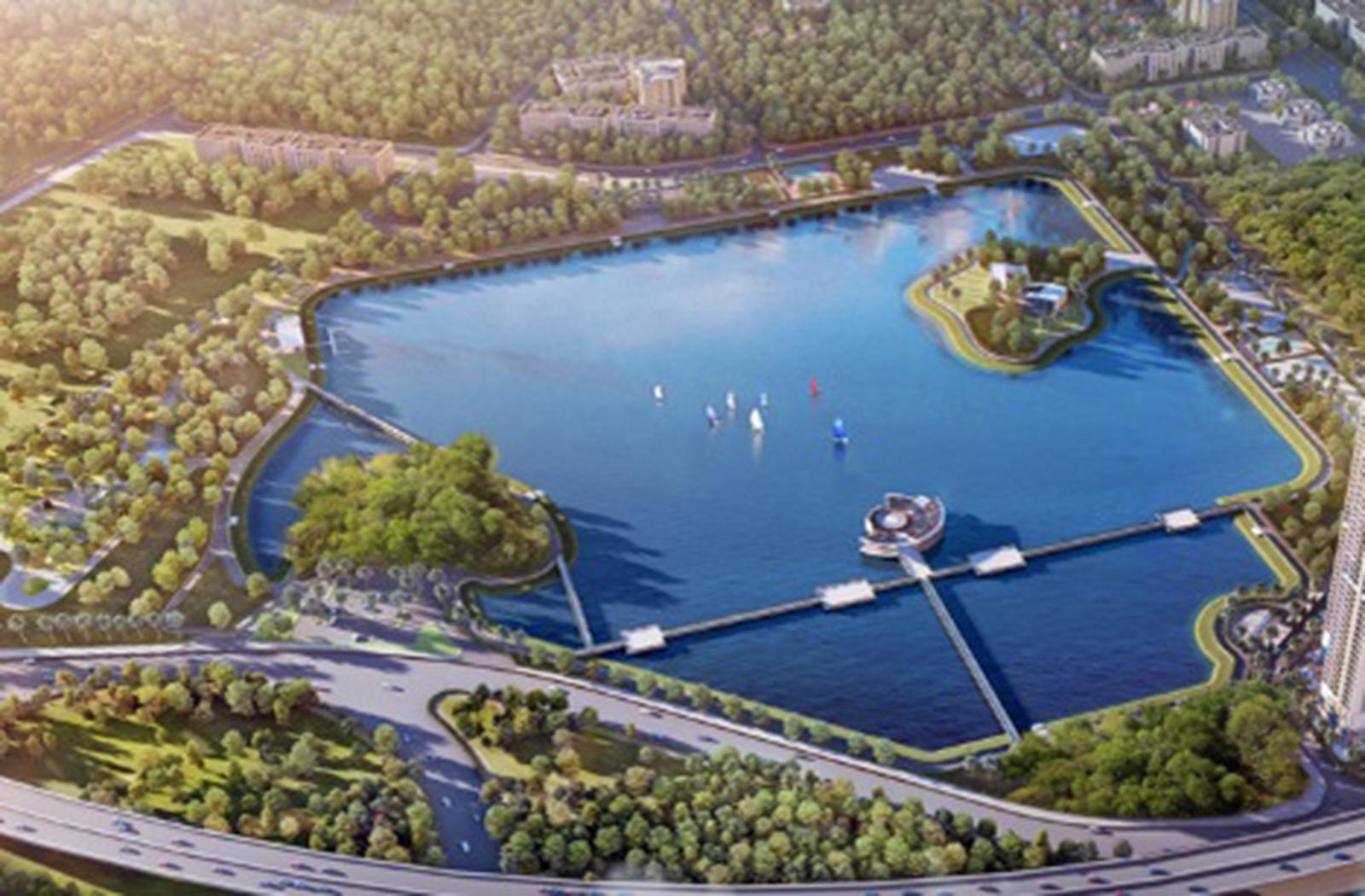 Công viên, hồ điều hòa Cầu Giấy rộng 32ha, gồm 19ha mặt nước, là điểm nhấn xanh đáng chú ý nhất tại khu vực phía Tây Hà Nội trong tương lai gần (Ảnh phối cảnh minh họa).