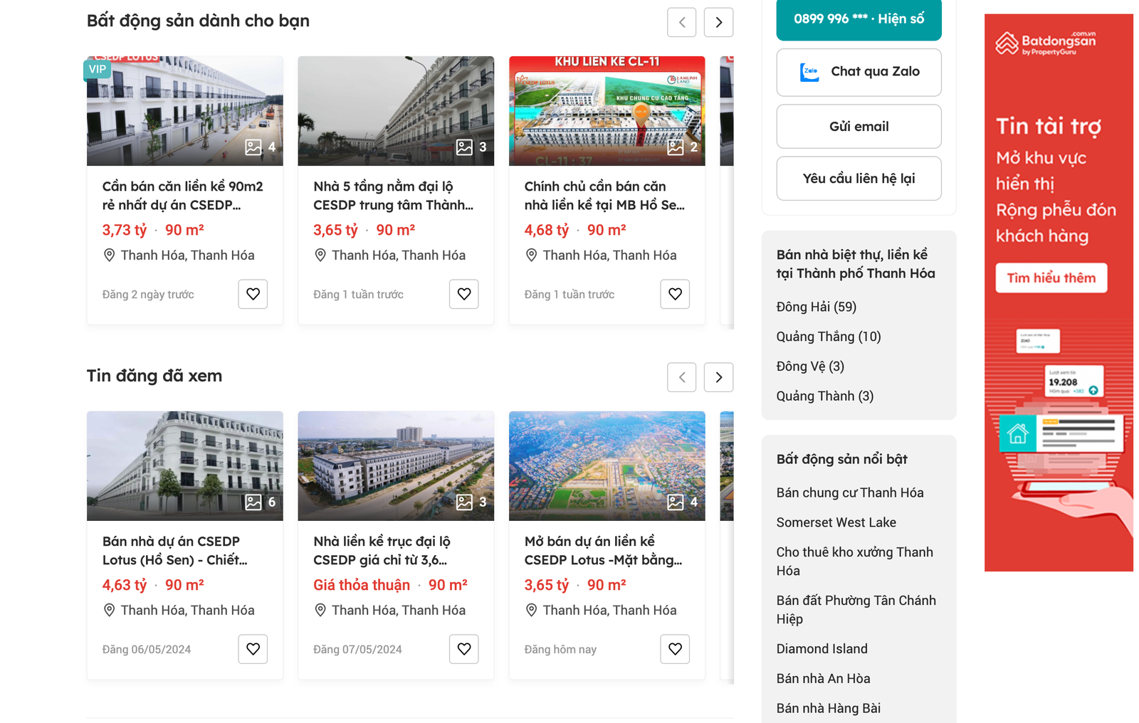 Dự án CSEDP Lotus được rao bán trên batdongsan.com. Ảnh: Chụp màn hình