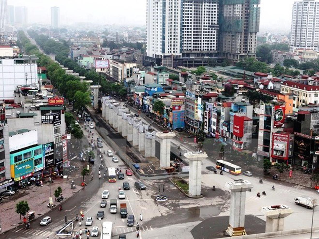 Một trong những hạng mục thi công của dự án đường sắt đô thị Cát Linh-Hà Đông. Ảnh: TTXVN