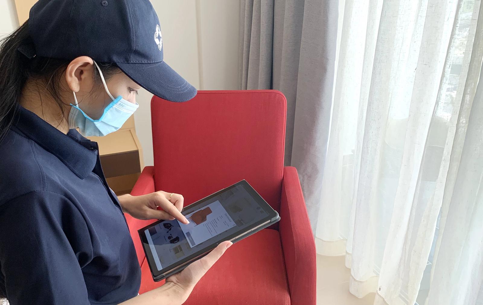 Nhân viên bàn giao kiểm tra lại danh mục nội thất trong căn hộ của khách hàng