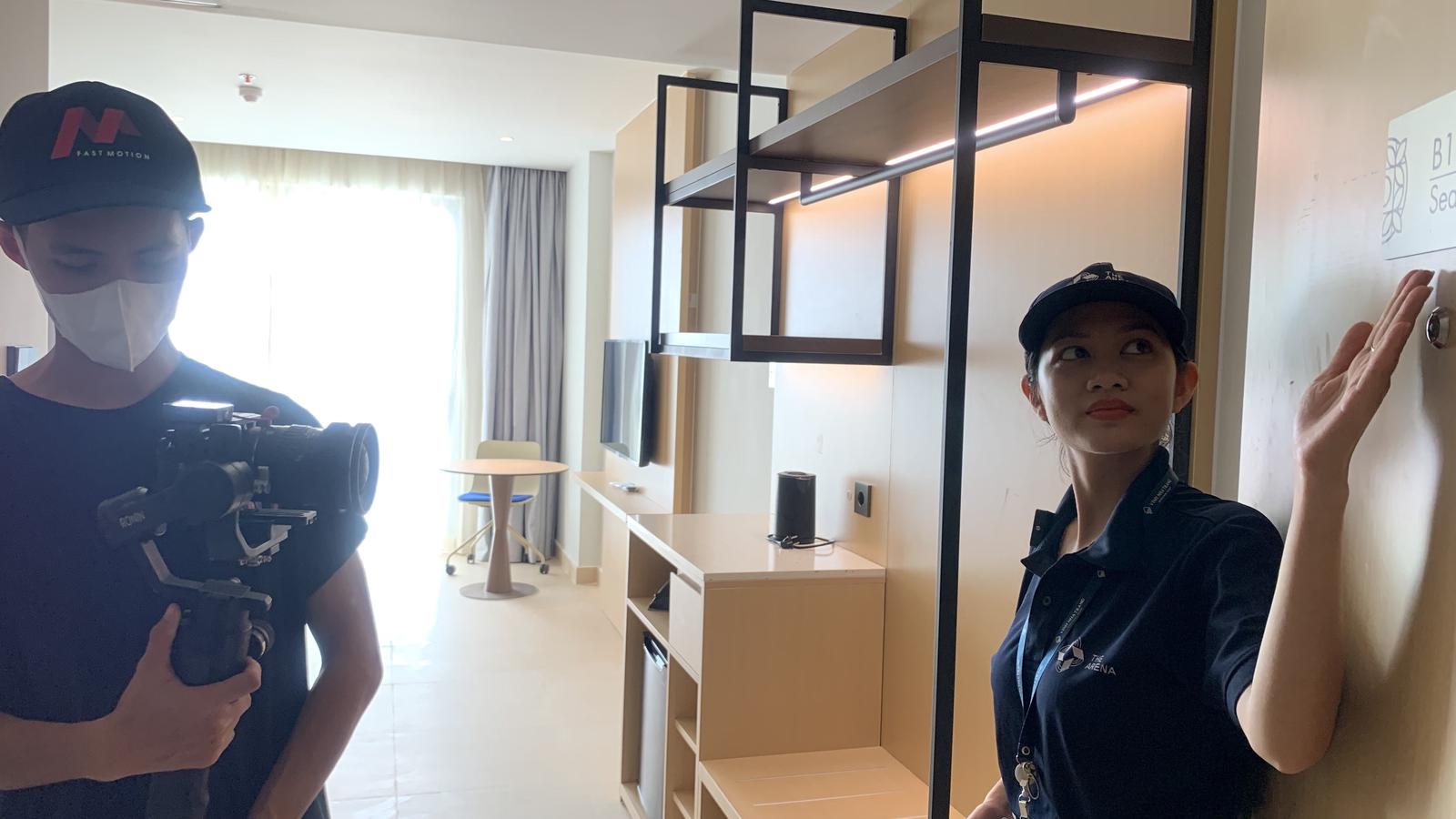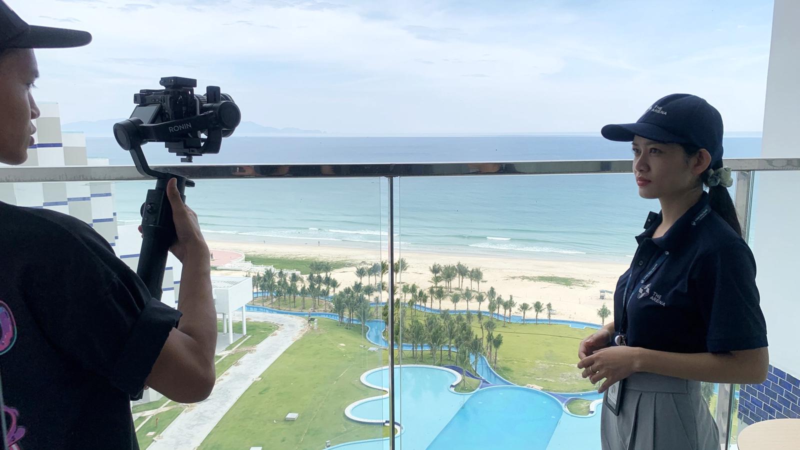 Nhân viên bàn giao quay video giới thiệu căn hộ cho khách hàng
