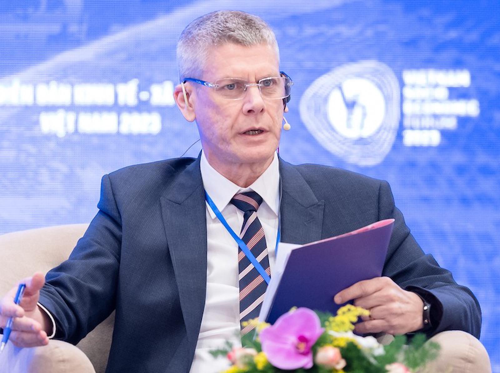 Việt Nam có rơi vào bẫy thu nhập trung bình? Tại diễn đàn, đề cập đến vấn đề tăng năng suất lao động, chuyên gia kinh tế quốc tế Jonathan Pincus, Chương trình Phát triển Liên hợp quốc (UNDP) cho rằng, cần nhìn nhận dài hơi thay vì trong giai đoạn ngắn. “Rất khó để một quốc gia có thể tăng trưởng năng suất nhanh trong một giai đoạn dài, đó chính là bẫy năng suất trung bình”, ông Pincus phát biểu và gọi đây là mối đe dọa lớn. Ông Jonathan Pincus, UNDP Việt Nam là nước thu nhập trung bình đạt được tăng trưởng đáng “ngưỡng mộ”. Vấn đề đặt ra là Việt Nam liệu có rơi vào bẫy thu nhập trung bình như các nước trên hay không? Theo chuyên gia của UNDP, vấn đề then chốt là Việt Nam phải thành công trong xây dựng hệ thống đổi mới quốc gia. Ông Pincus kiến nghị Chính phủ Việt Nam phải thực sự tạo những cú hích lớn trong áp dụng đổi mới sáng tạo quốc gia, đầu tư mạnh mẽ vào R&D cũng như phát triển nguồn nhân lực chất lượng cao cho dài hạn. Việt Nam hiện là một trong những quốc gia dẫn đầu trên toàn thế giới về số lượng du học sinh tại Mỹ và châu Âu. Ông Pincus cho rằng đây là nguồn lao động trình độ cao, giỏi công nghệ và hứa hẹn là nhà khoa học hàng đầu. “Họ cần được thu hút trở lại vào các viện nghiên cứu, trường đại học trong nước để thực sự đóng góp cho sự phát triển”, chuyên gia kinh tế UNDP đề xuất. Ông Felix Weidencaff, chuyên gia về việc làm, Văn phòng Tổ chức Lao động Quốc tế (ILO) Khu vực Châu Á - Thái Bình Dương nói, Việt Nam đã đạt được tăng trưởng kinh tế chưa từng có trong thập kỷ qua, tuy nhiên so với các nước ASEAN hiện nay vẫn còn khoảng cách, thấp hơn một số quốc gia trong khu vực. Theo ông Felix Weidencaff, Việt Nam cần phát triển nguồn nhân lực phù hợp với thị trường và nền kinh tế tri thức, công nghệ, công nghiệp 4.0; thiết lập hệ thống thông tin thị trường lao động hiệu quả; tăng năng suất đối với doanh nghiệp vừa và nhỏ.