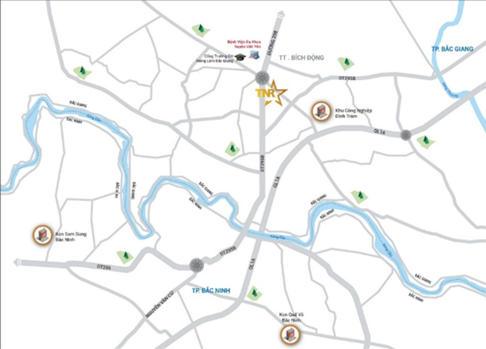 Dự án TNR Stars Bích Động nằm trên địa bàn tỉnh Bắc Giang – địa phương có vị trí chiến lược nằm trong Vùng Thủ đô Hà Nội (vùng phát triển kinh tế tổng hợp, trung tâm chính trị - hành chính quốc gia, trung tâm lớn về văn hóa, giáo dục, khoa học – công nghệ và giao dịch quốc tế của cả nước).