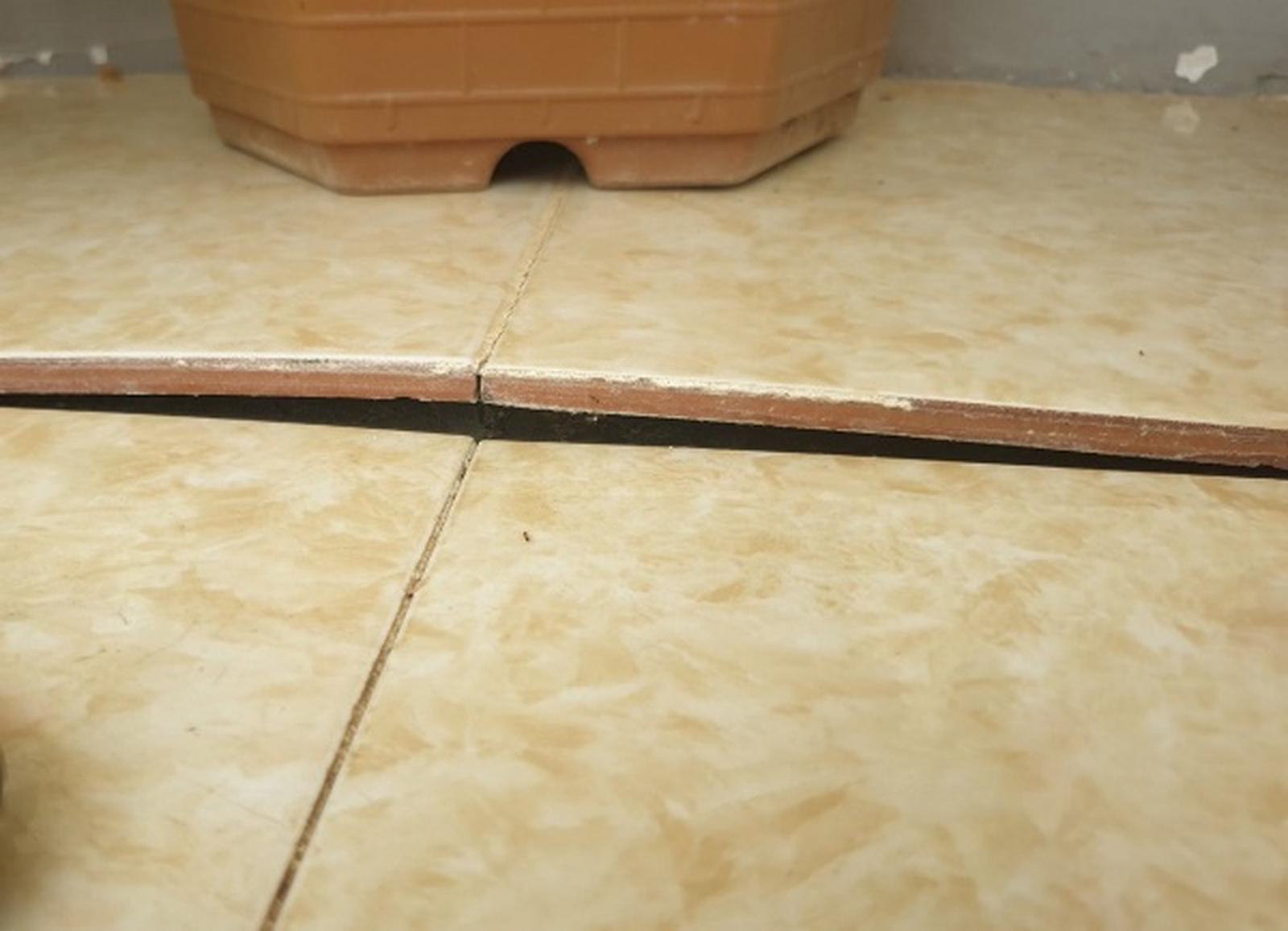 Gạch nền vừa sử dụng đã “hở hàm ếch”. Ảnh: HY