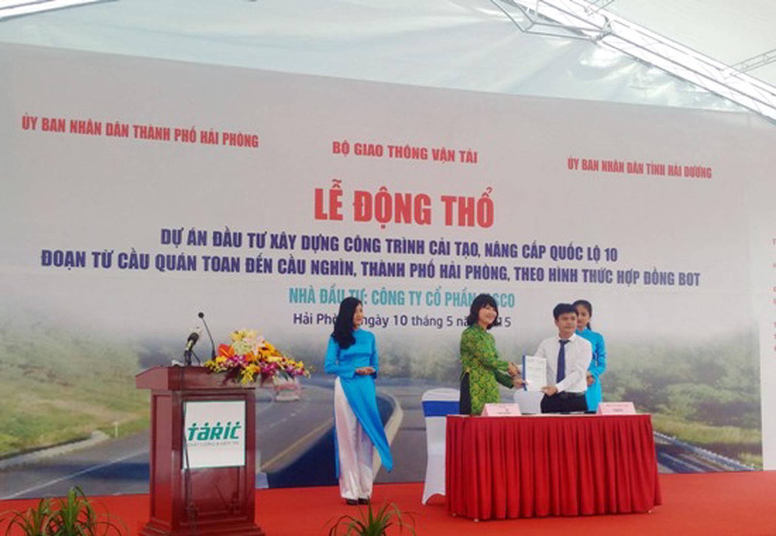Sáng ngày 10/05/2015, tại TP Hải Phòng đã diễn ra Lễ động thổ Dự án đầu tư xây dựng công trình cải tạo, nâng cấp quốc lộ 10 đoạn từ Quán Toan đến Cầu Nghìn, (theo hình thức hợp đồng BOT). Dự án do Ngân hàng TMCP Ngoại thương Việt Nam (Vietcombank) là đơn vị thu xếp vốn với tổng mức đầu tư là 2.815 tỷ đồng cho đoạn đường khoảng hơn 30 km.