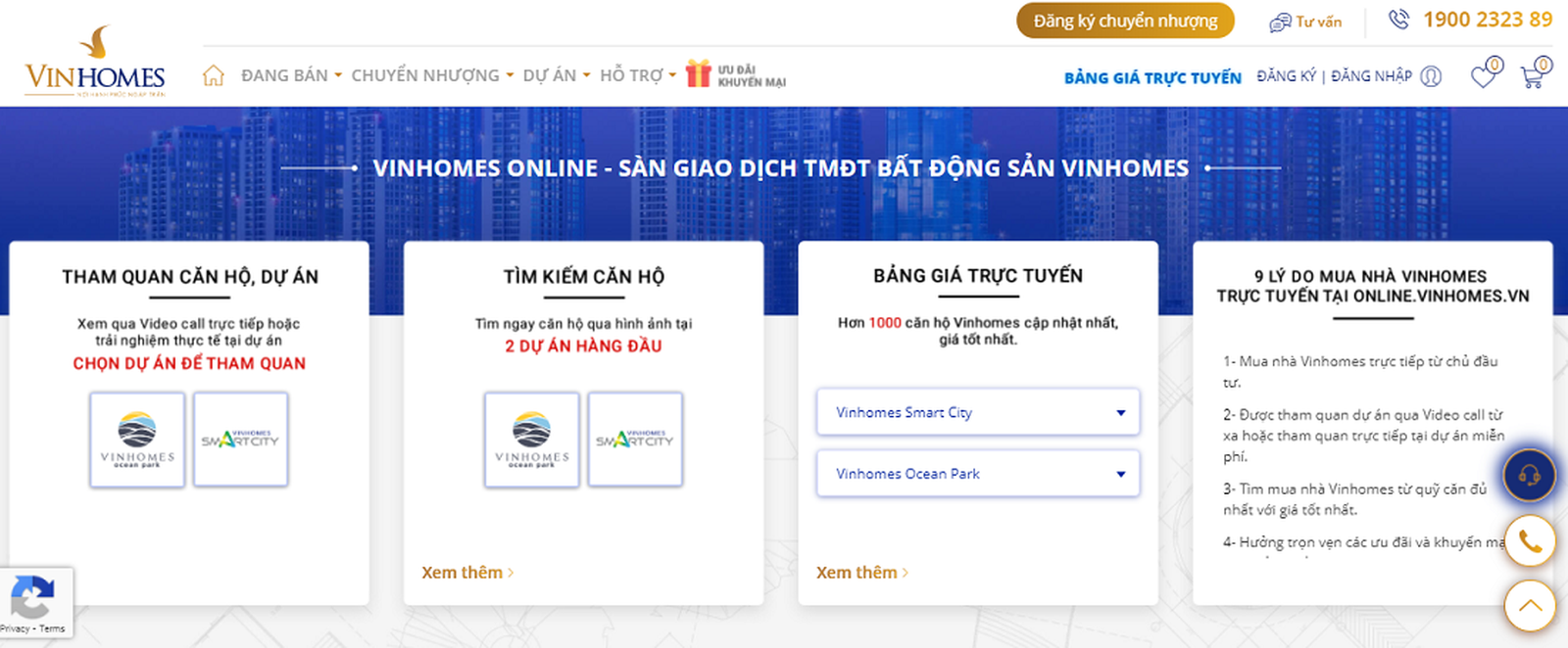 Mô hình kinh doanh O2O các sản phẩm chuyển nhượng của Vinhomes sẽ tiên phong xây dựng thị trường bất động sản thứ cấp minh bạch khi công khai toàn bộ thông tin và giá bán trên trang thương mại điện tử Vinhomes Online (https://online.vinhomes.vn). Khi giao dịch chuyển nhượng thông qua Vinhomes, cả Chủ sở hữu và khách mua sẽ được đồng thời hưởng bộ ba lợi ích ưu việt, bao gồm: giao dịch an toàn - tài chính an tâm - sản phẩm đa dạng.