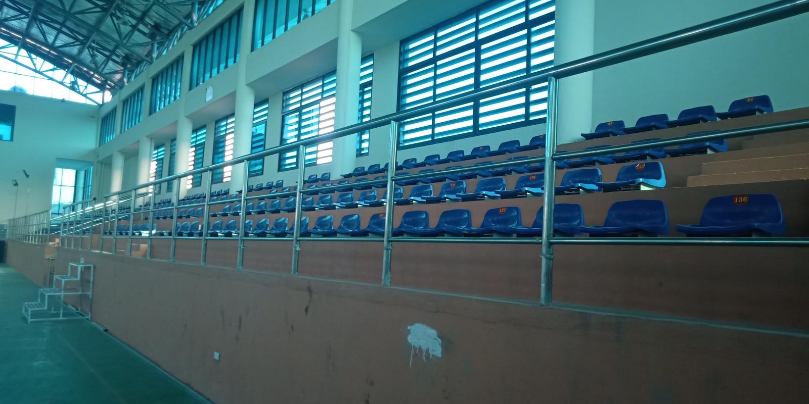 Khán đài Nhà Thi đấu được chia thành 3 khu vực, có khoảng cách cho từng khách hàng tham gia đấu giá theo quy định. Ảnh: Văn Thanh
