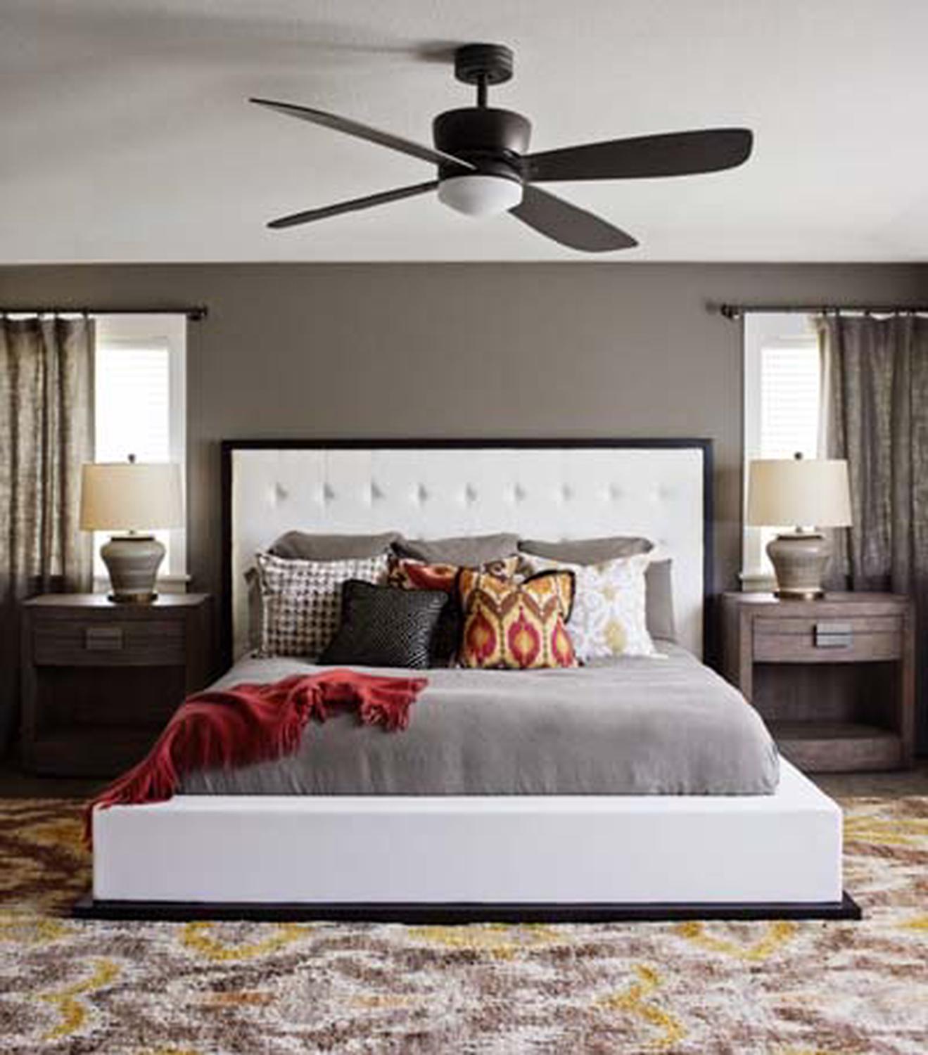 Việc bố trí tủ/bàn đối xứng hai bên đầu giường đã trở thành điều tất yếu không thể bỏ qua trong những năm gần đây, và cũng chính vì vậy mà xu hướng thiết kế cân bằng càng trở nên phổ biến. Bạn có thể bổ sung một đôi đèn bàn hoặc đèn sàn cho 2 bên để tăng thêm sự lịch lãm.
