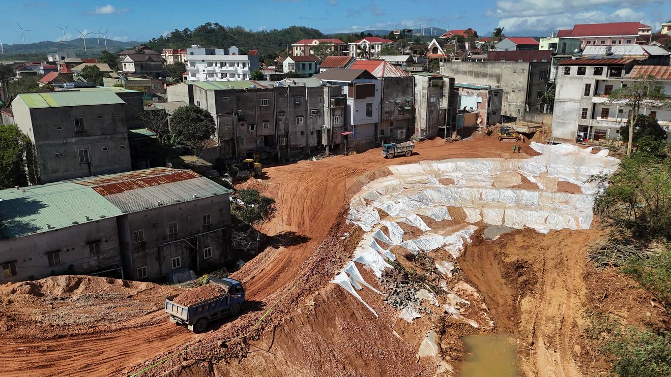 Công trường chống sạt lở tại khu dân cư thôn 3A, xã Khe Sanh chạy đua với thời gian để giữ an toàn cho từng mái nhà trước mùa mưa mới và để Nhân dân an tâm trở về kịp đón Tết trong mái ấm của mình. Ảnh: Minh Tân