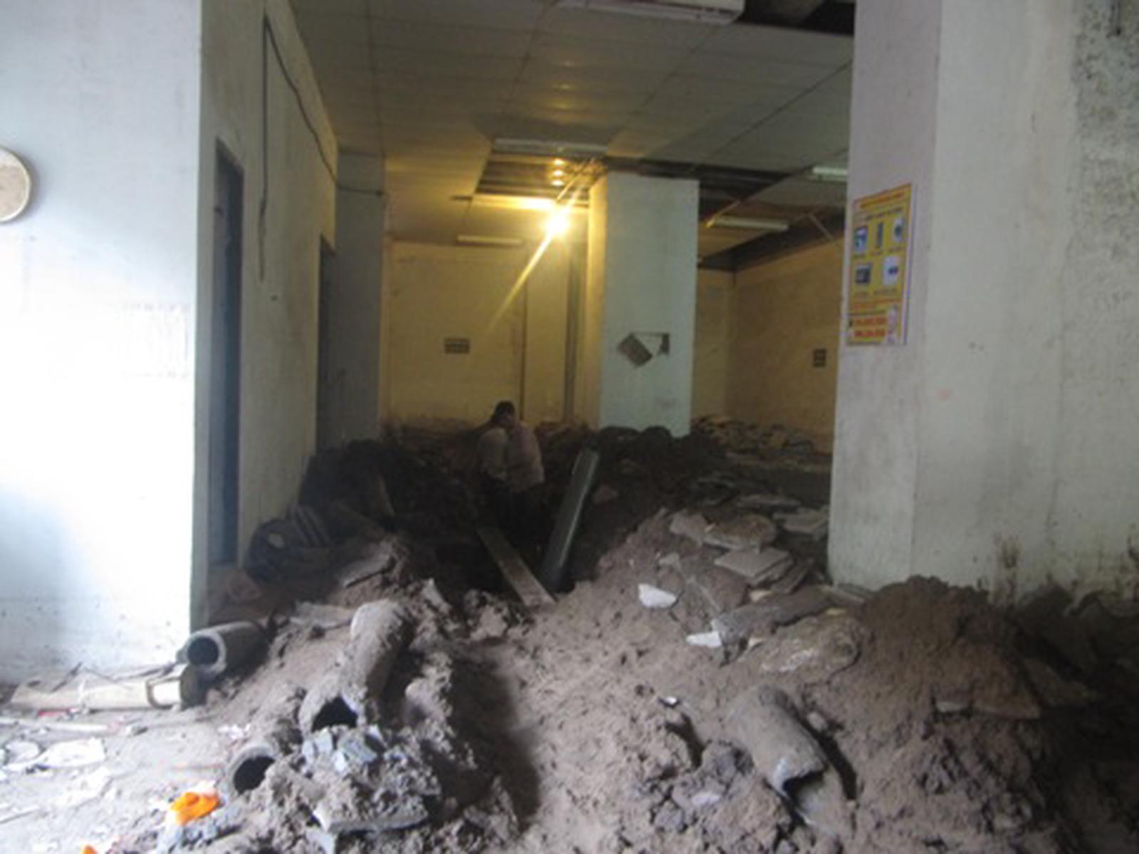 Hệ thống thoát nước thải nhà A1 không thể hoạt động. Ảnh: Trần Quý