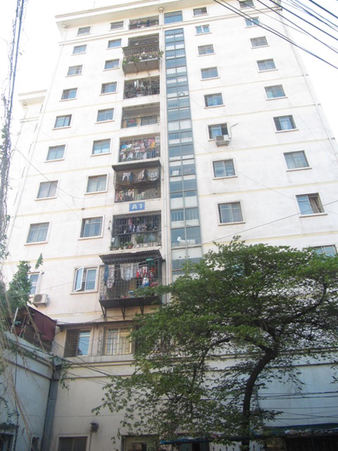 Nhà A1 Khu Tái định cư Đền Lừ 2 bị xuống cấp nghiêm trọng. Ảnh: Trần Quý