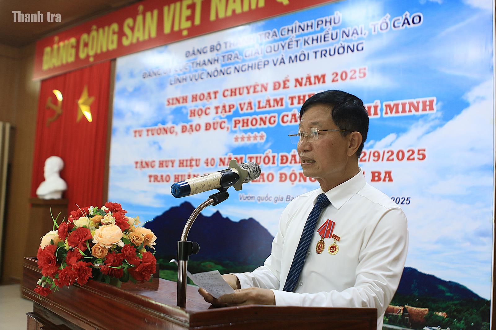 Ông Đào Văn Thanh, Phó Cục trưởng Cục Thanh tra và giải quyết khiếu nại, tố cáo về lĩnh vực Nông nghiệp và Môi trường, phát biểu khi vinh dự được nhận Huy hiệu 40 năm tuổi Đảng và Huân chương Lao động hạng Ba. Ảnh: Hoàng Nam