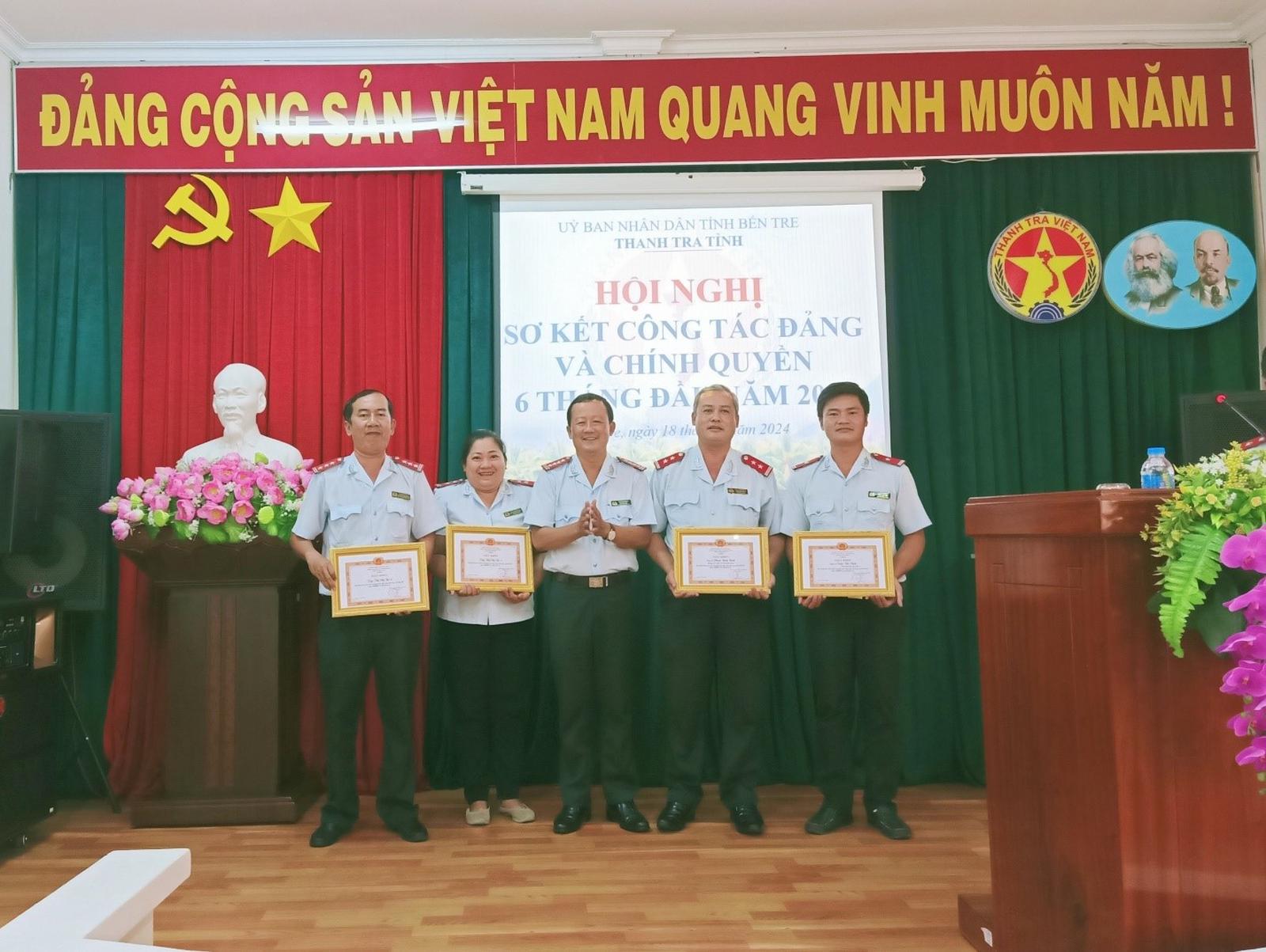 Ông Phạm Bính Định (thứ hai từ phải sang) được khen thưởng vì những thành tích tiêu biểu trong 3 năm thực hiện Kết luận số 01-KL/TW. Ảnh: Huỳnh Như